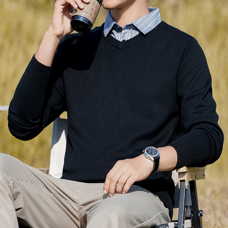 봄과 가을 스웨터 남성용 가짜 투피스 셔츠 칼라 캐주얼 니트웨어 새로운 유행 한국 스타일 신사 슬림핏 스웨터스토어 가기