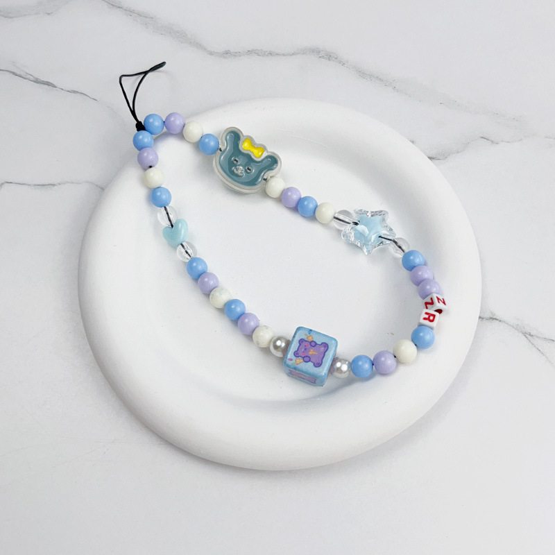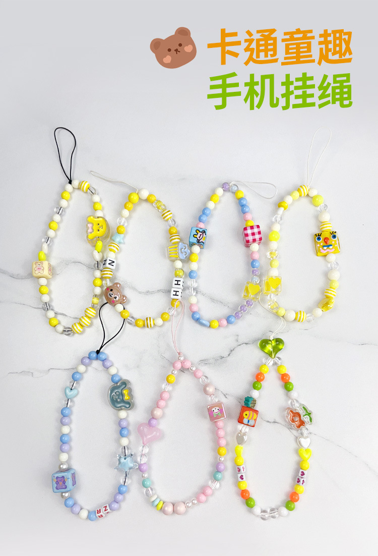 새로운 캔디 컬러 만화 곰 휴대 전화 체인 DIY 휴대 전화 케이스 교수형 체인 끈 사각 격자 무늬 드롭 방지 휴대 전화 체인스토어 가기