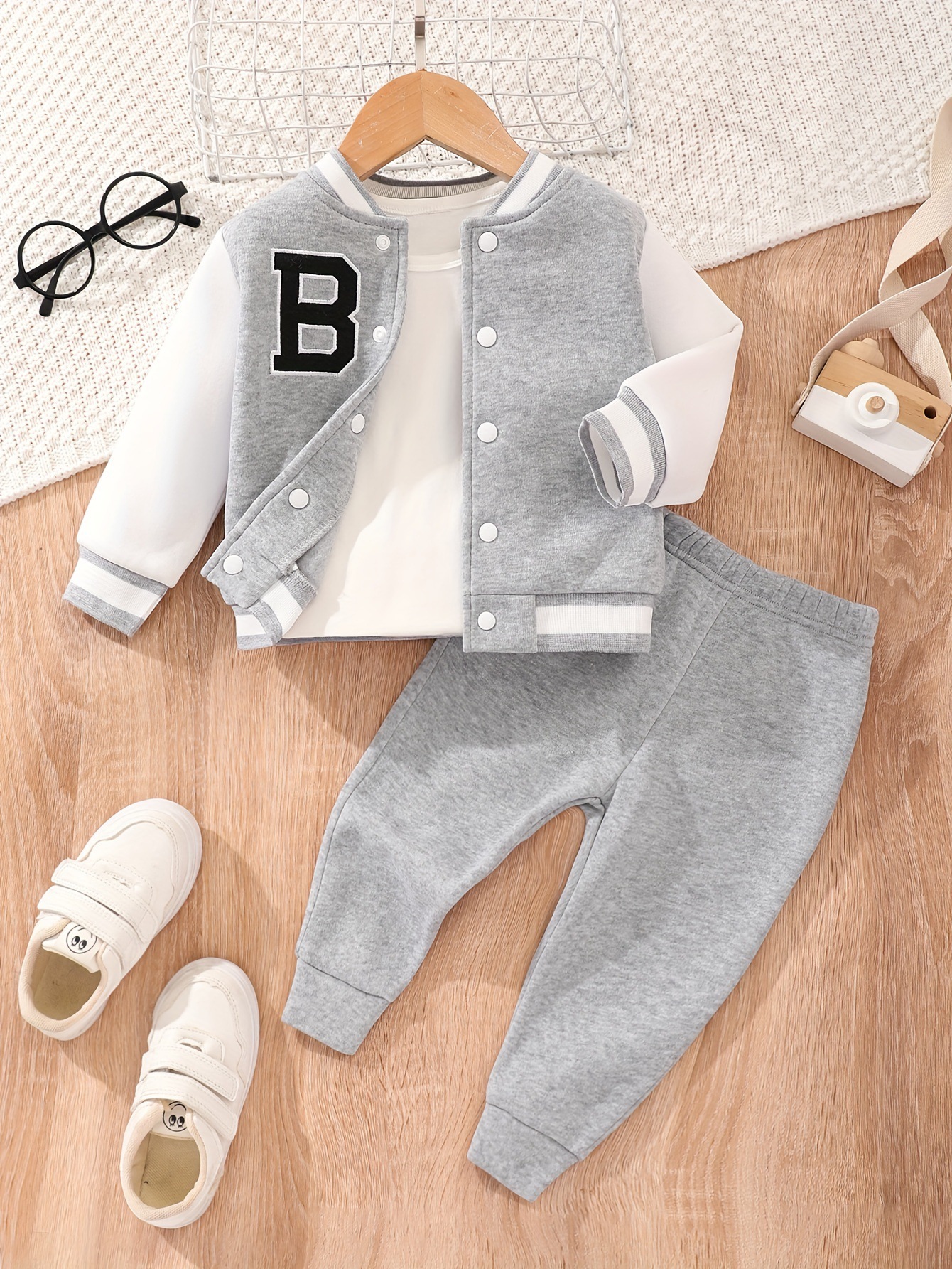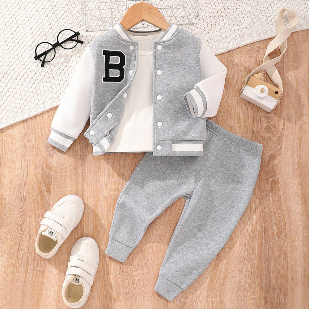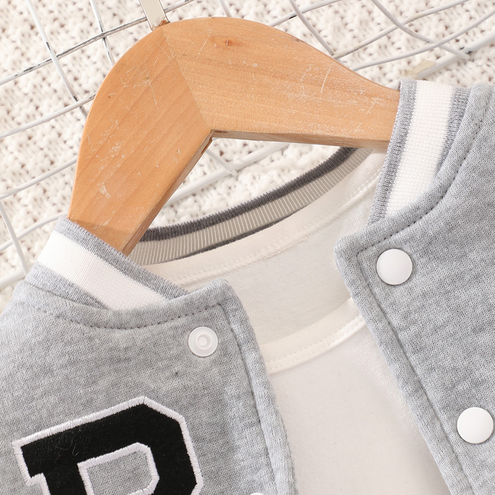 아기 세트 2023 소년 가을 캐주얼 간단한 회색 편지 자수 야구 세트 투피스 도매스토어 가기