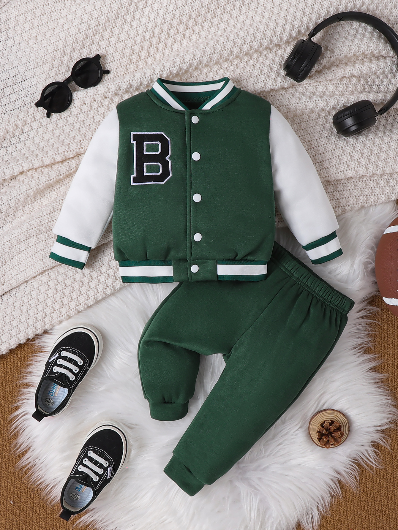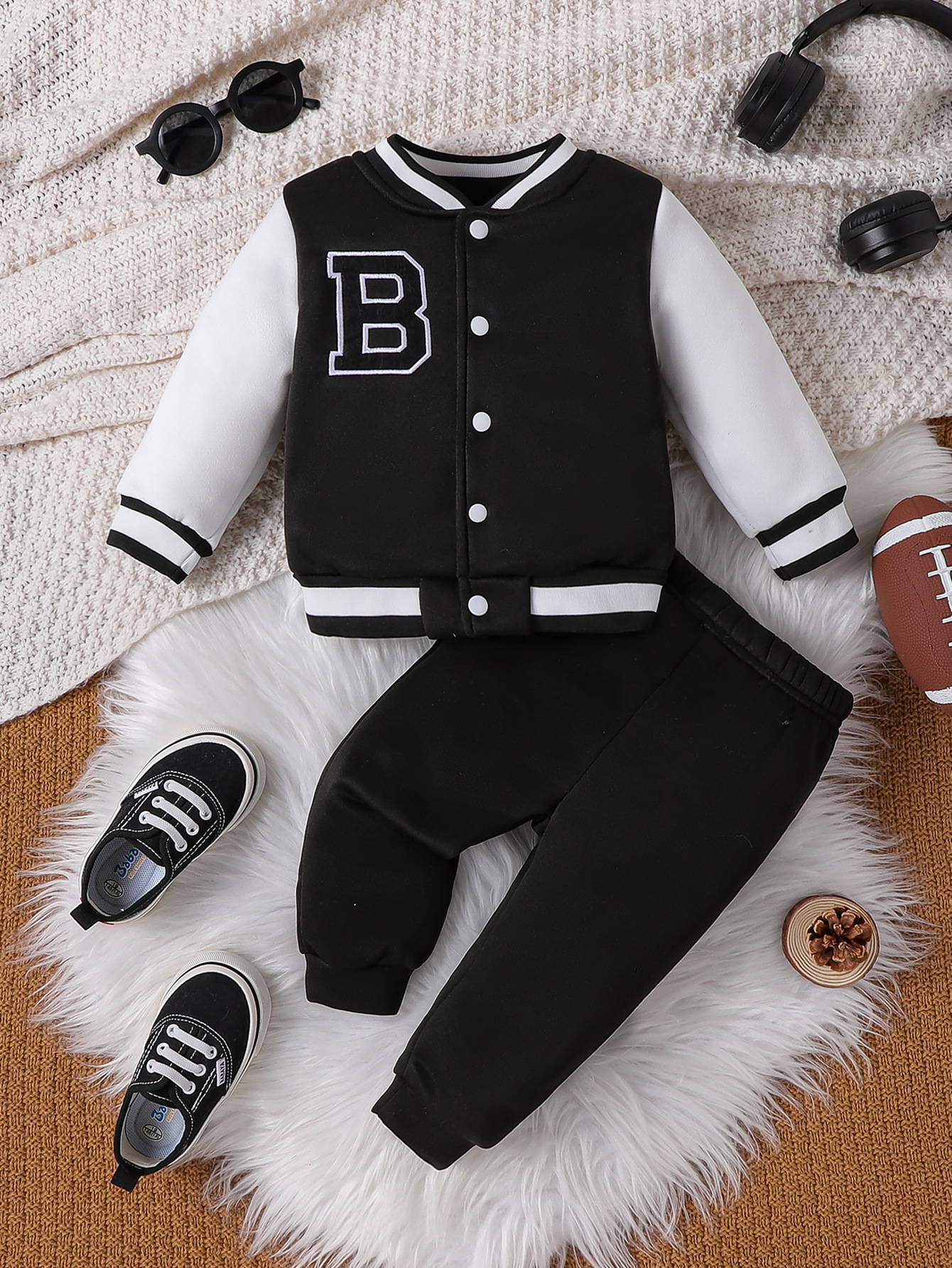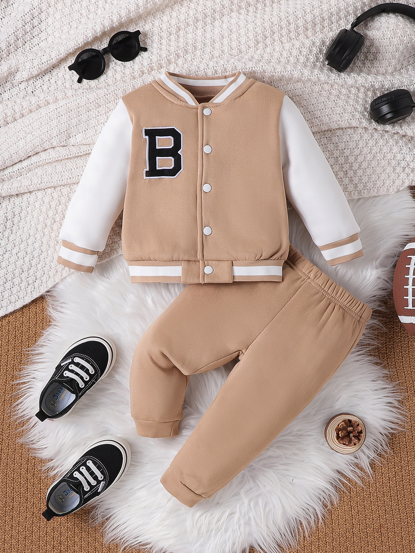 아기 세트 2023 소년 가을 캐주얼 간단한 회색 편지 자수 야구 세트 투피스 도매스토어 가기