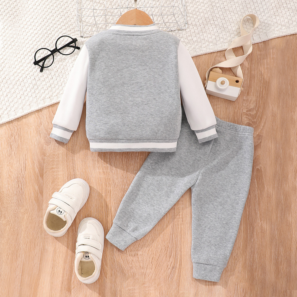 아기 세트 2023 소년 가을 캐주얼 간단한 회색 편지 자수 야구 세트 투피스 도매