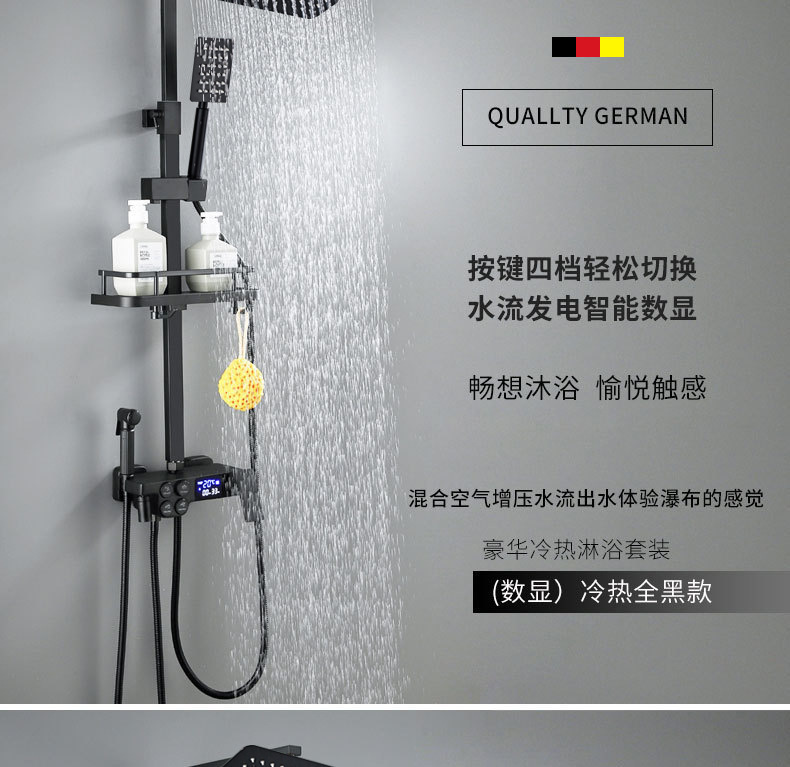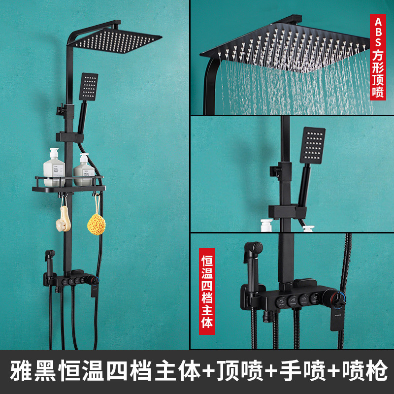 블랙 샤워 디지털 디스플레이 온도조절 샤워 세트 욕실용 고압 신형 4단계 다기능 범용스토어 가기