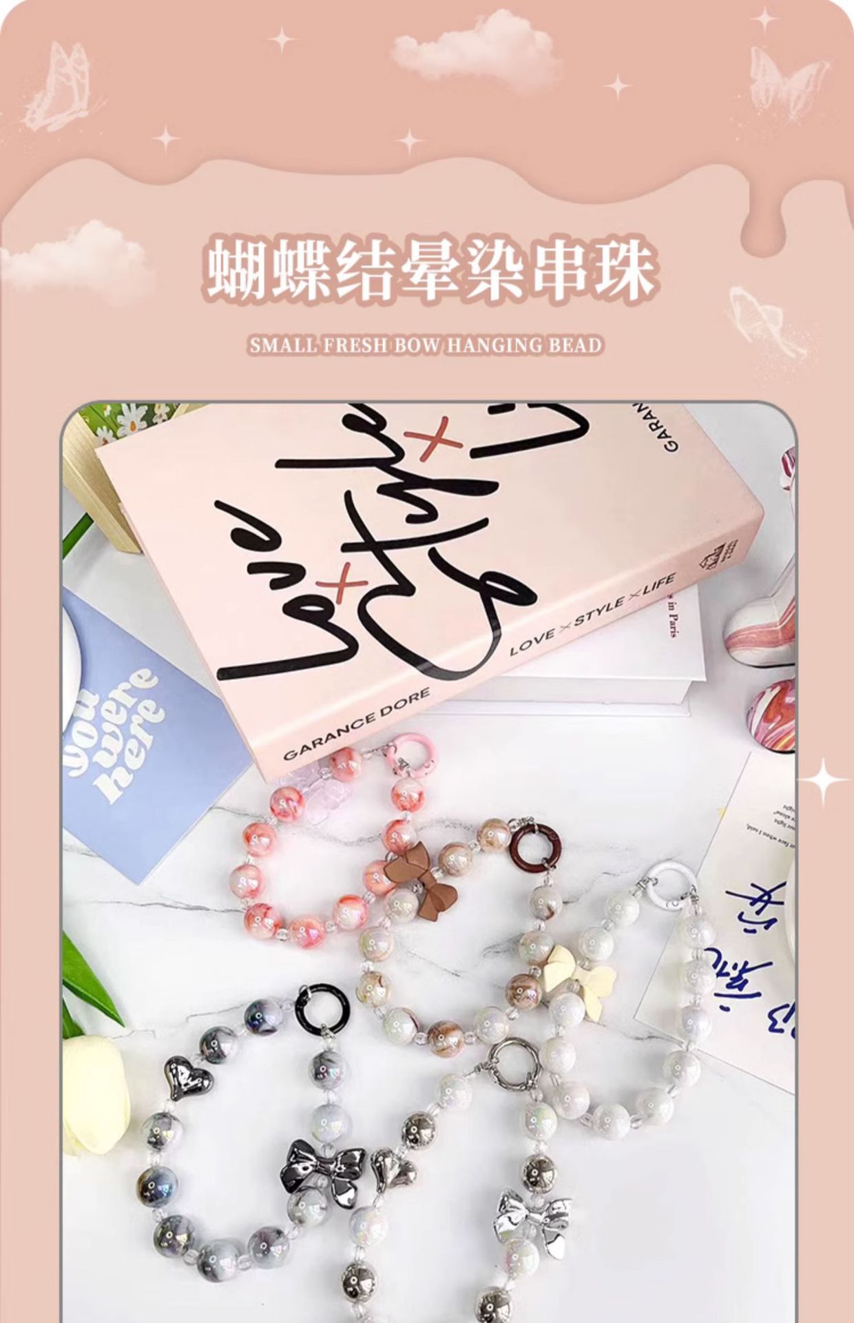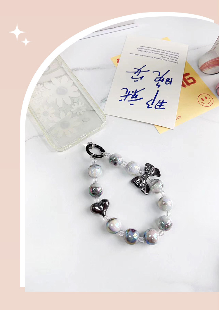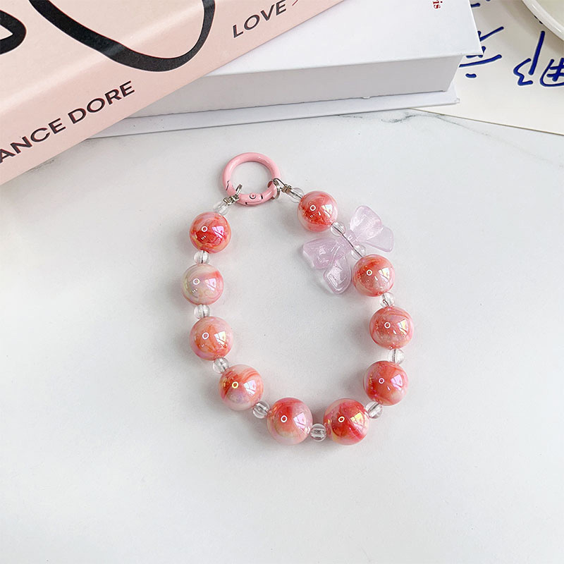 새로운 활 지글 구슬 휴대 전화 매달려 체인 짧은 사랑 젤리 비즈 열쇠 고리 가방 여성을위한 장식품 매달려