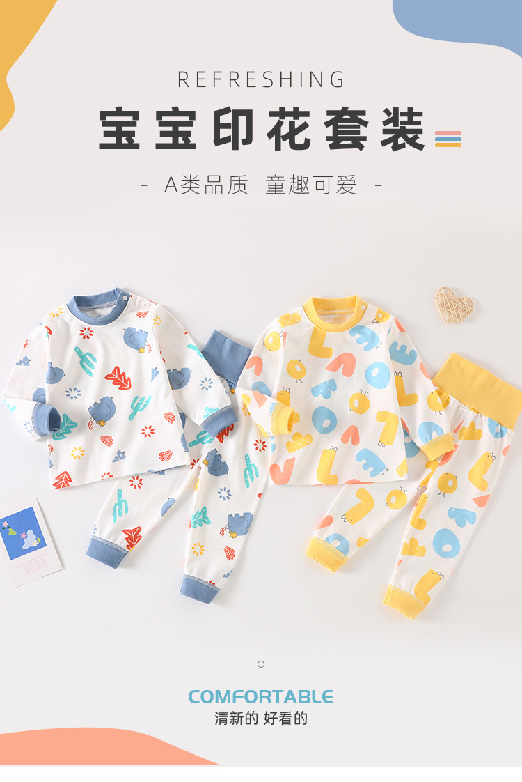 아기의 가을 옷과 바지 따뜻한 세트 봄과 가을 귀여운 아기 속옷 소년과 소녀 가을 옷 어린이를위한 잠옷스토어 가기