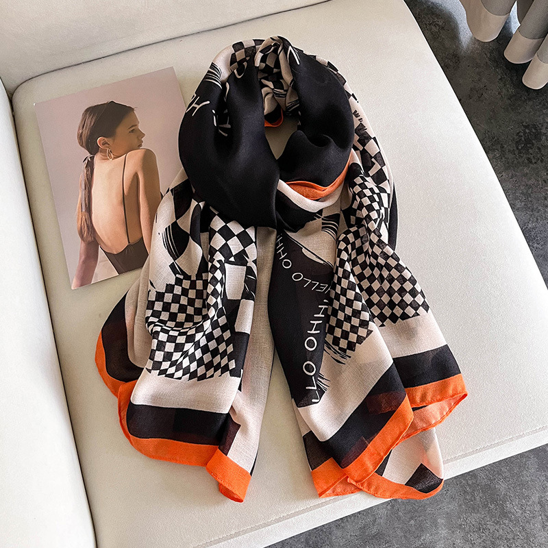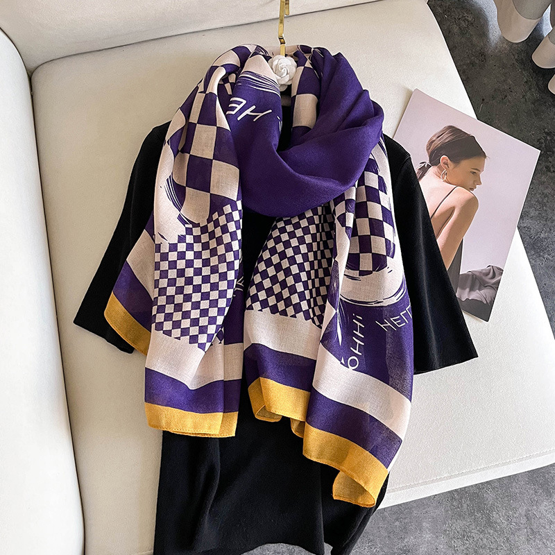 새로운 패션 편지 면과 린넨 스카프 여성의 가을과 겨울 얇은 자외선 차단제 숄 스카프 외부 해변 스카프 모든 일치 유행