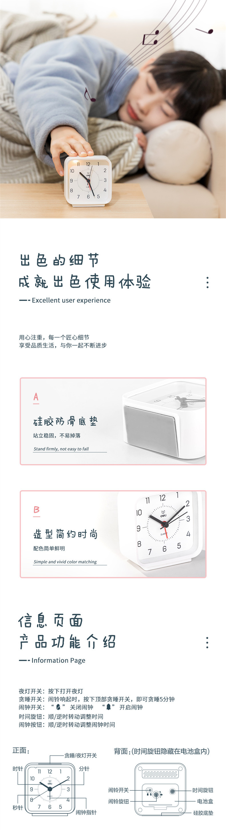 델리 8851 포인터 알람 시계 학생 창조적 인 스마트 알람 시계 어린이 침실 깨우기 유물 알람 시계 도매