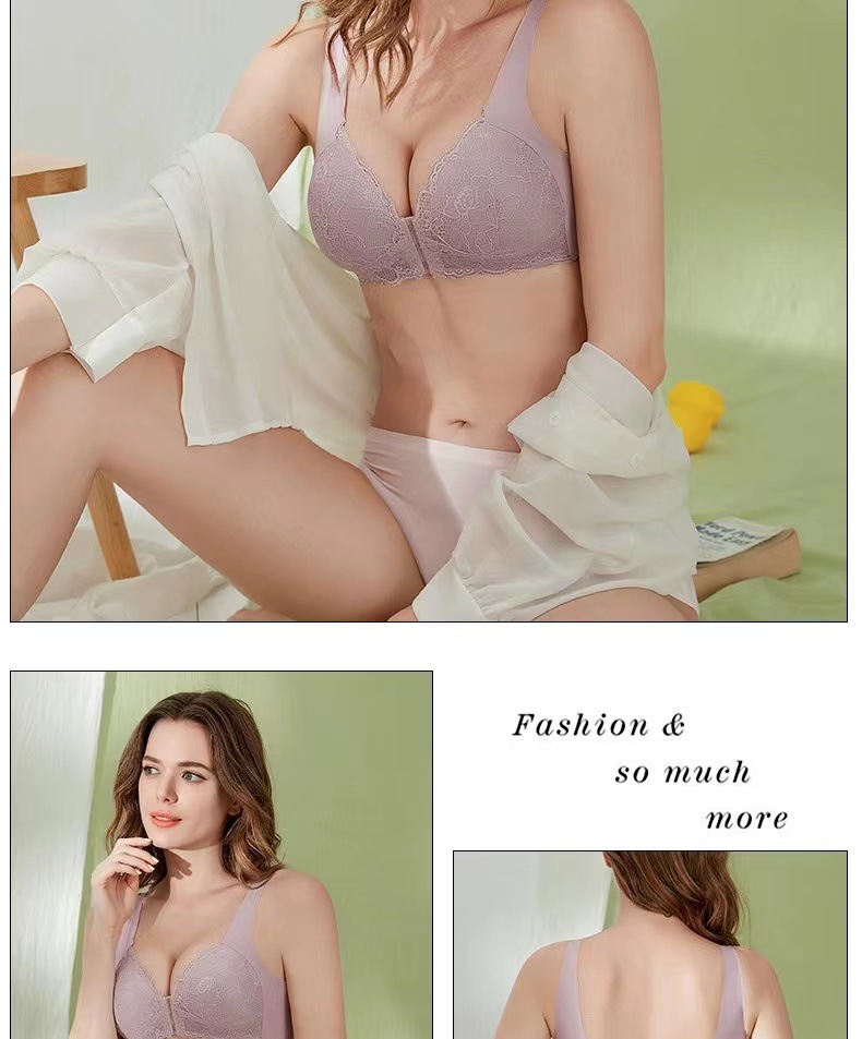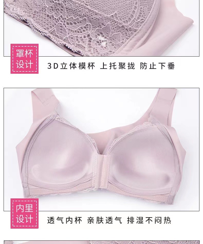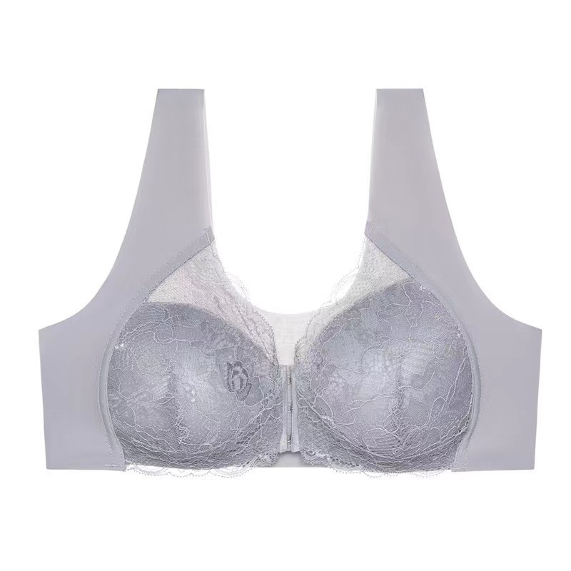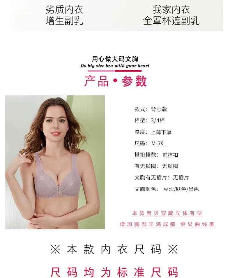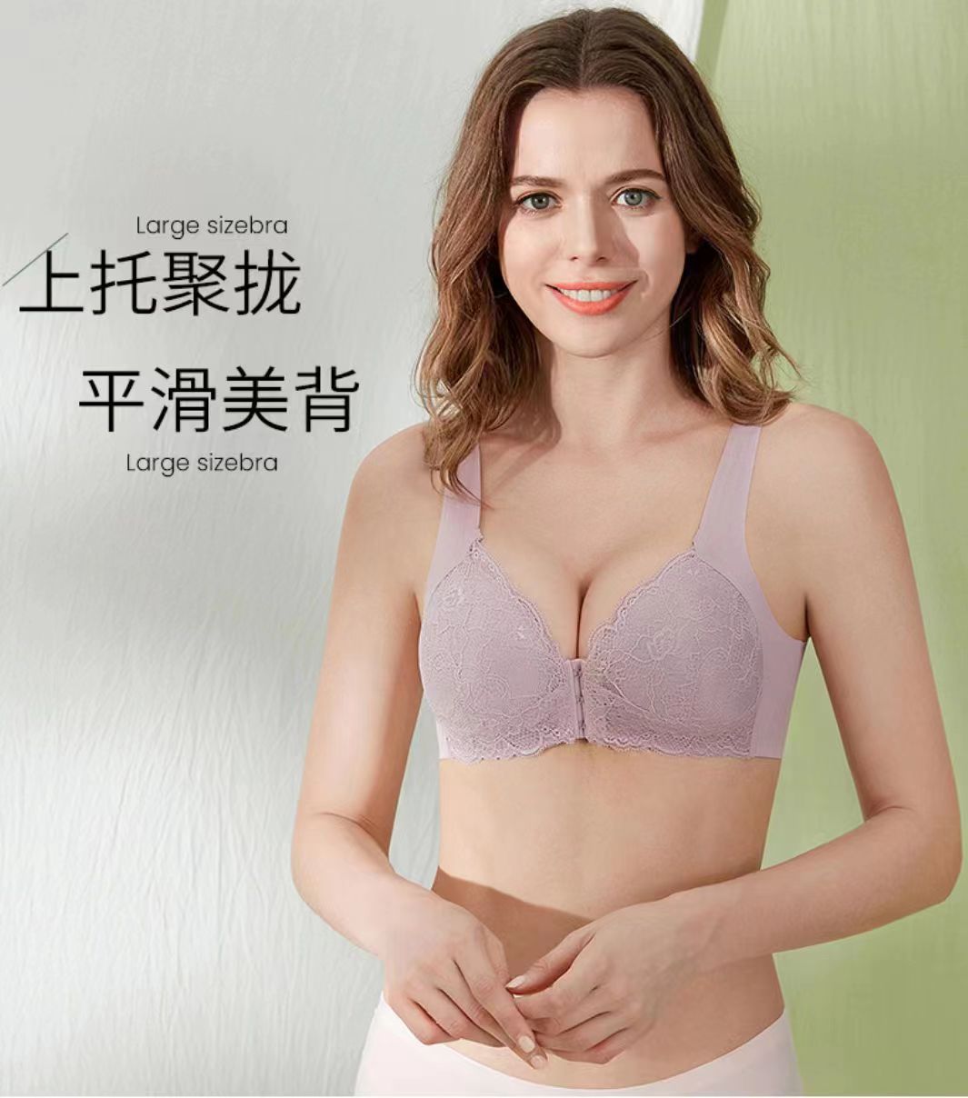 빅사이즈 앞후크 노와이어 여성용 브라, 수유용 심리스 레이스 브라, U자형 등 디자인 풀컵 브라