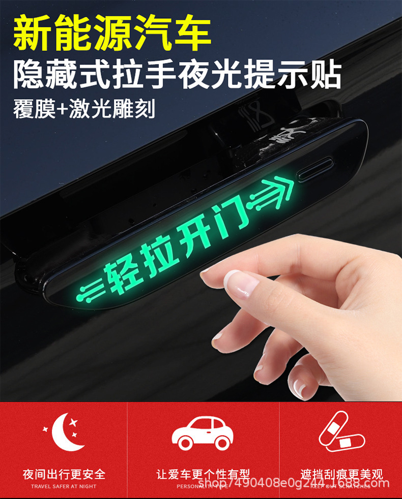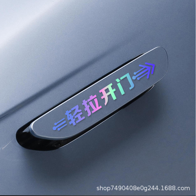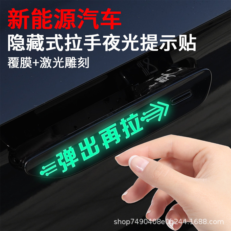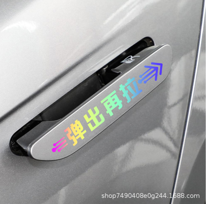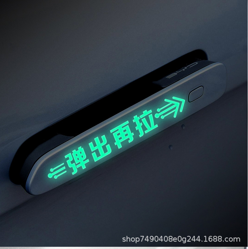 국경 간 새로운 에너지 전기 자동차 숨겨진 도어 핸들 팝업 및 라이트 오픈 도어 빛나는 프롬프트 스티커를 당깁니다.스토어 가기