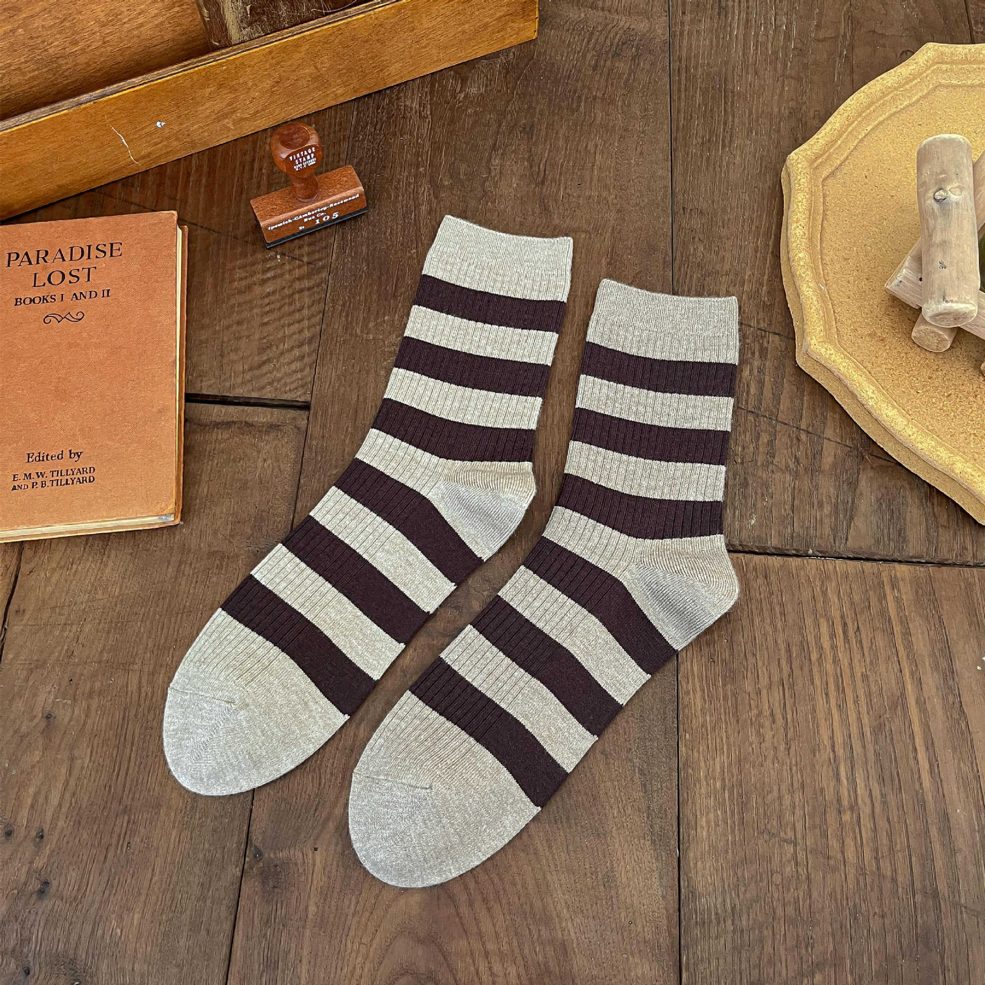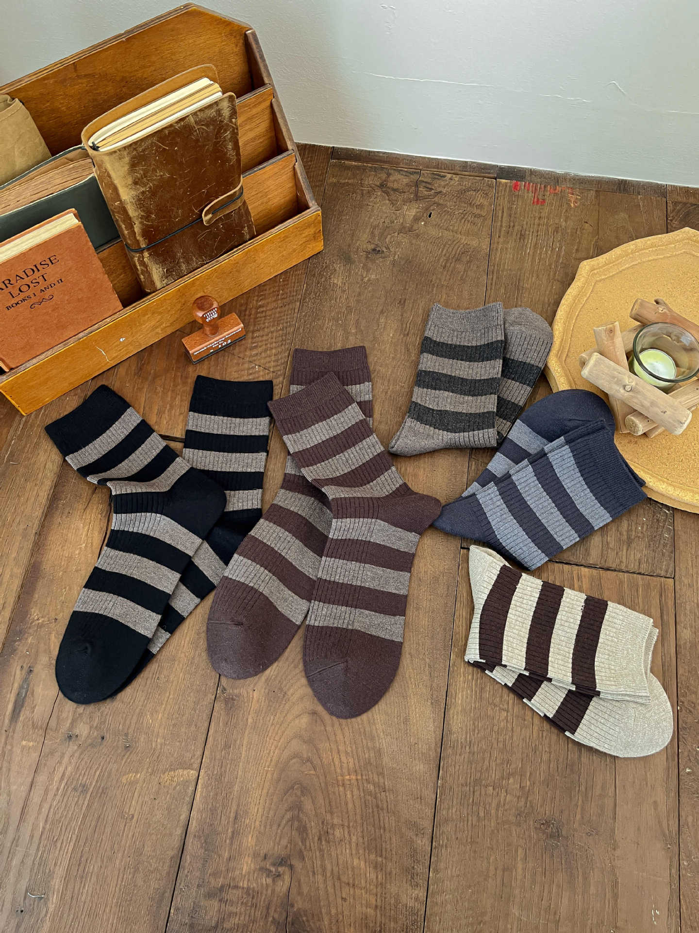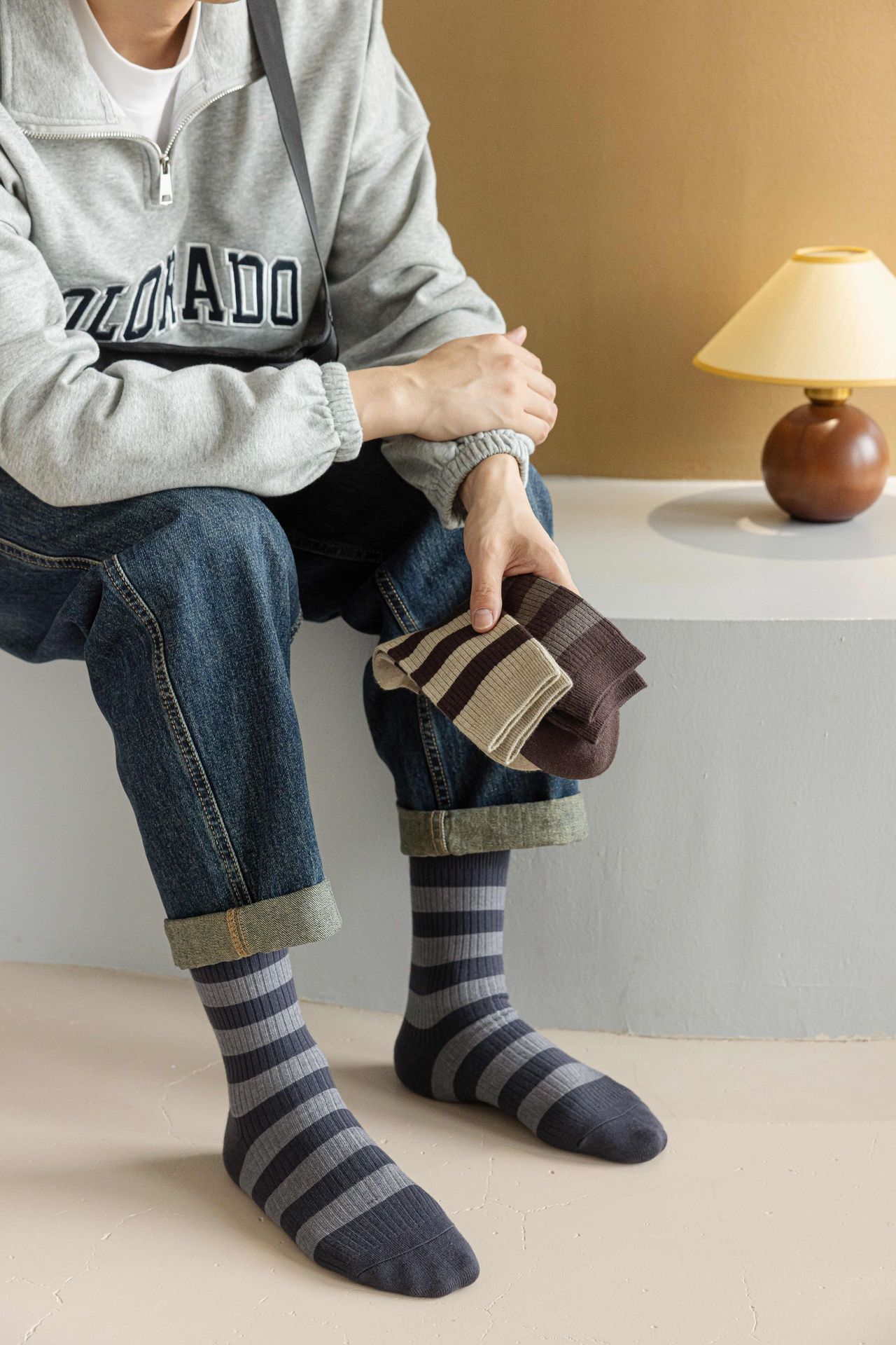 스트라이프 캐시미어 남성 양말 가을과 겨울 다용도 캐주얼 손 부드러운 왁스 양말 패션 다크 브라운 더미 양말 미드 튜브 양말스토어 가기