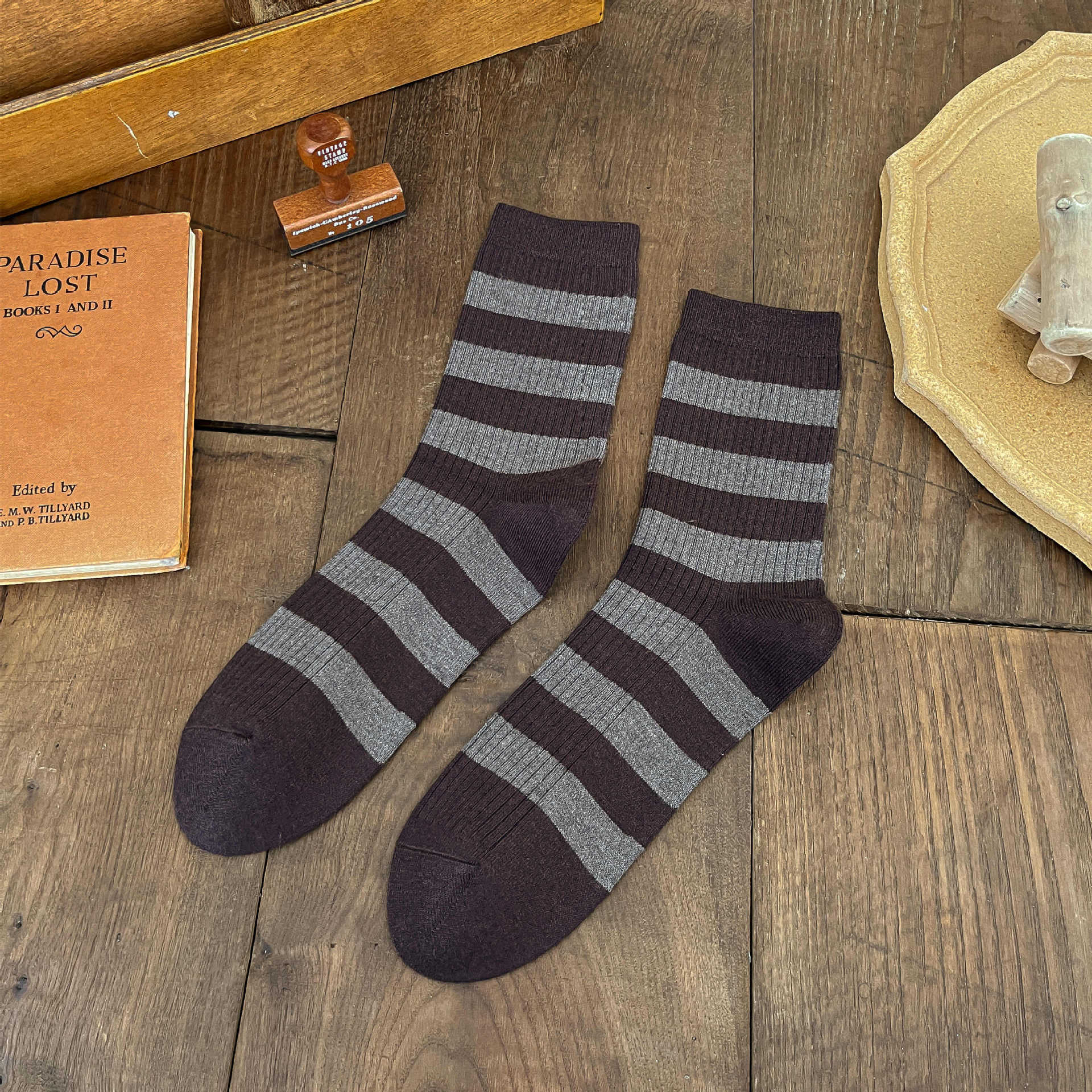 스트라이프 캐시미어 남성 양말 가을과 겨울 다용도 캐주얼 손 부드러운 왁스 양말 패션 다크 브라운 더미 양말 미드 튜브 양말