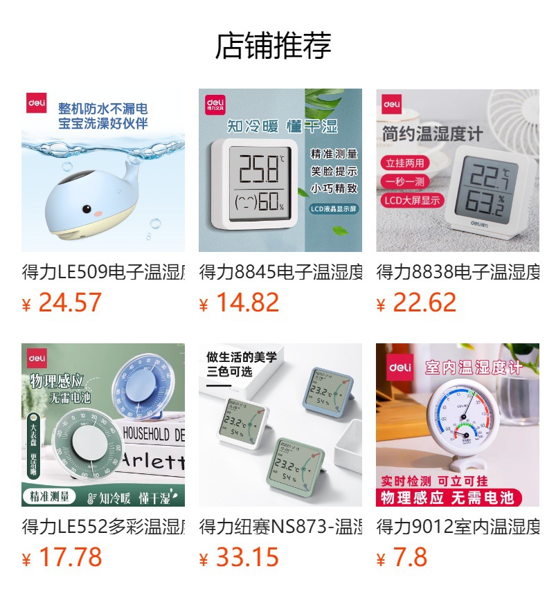 Deli 8845ES 전자 온도 및 습도 측정기 미니 가정용 실내 아기 방 고정밀 지능형 온도 및 습도 측정기스토어 가기