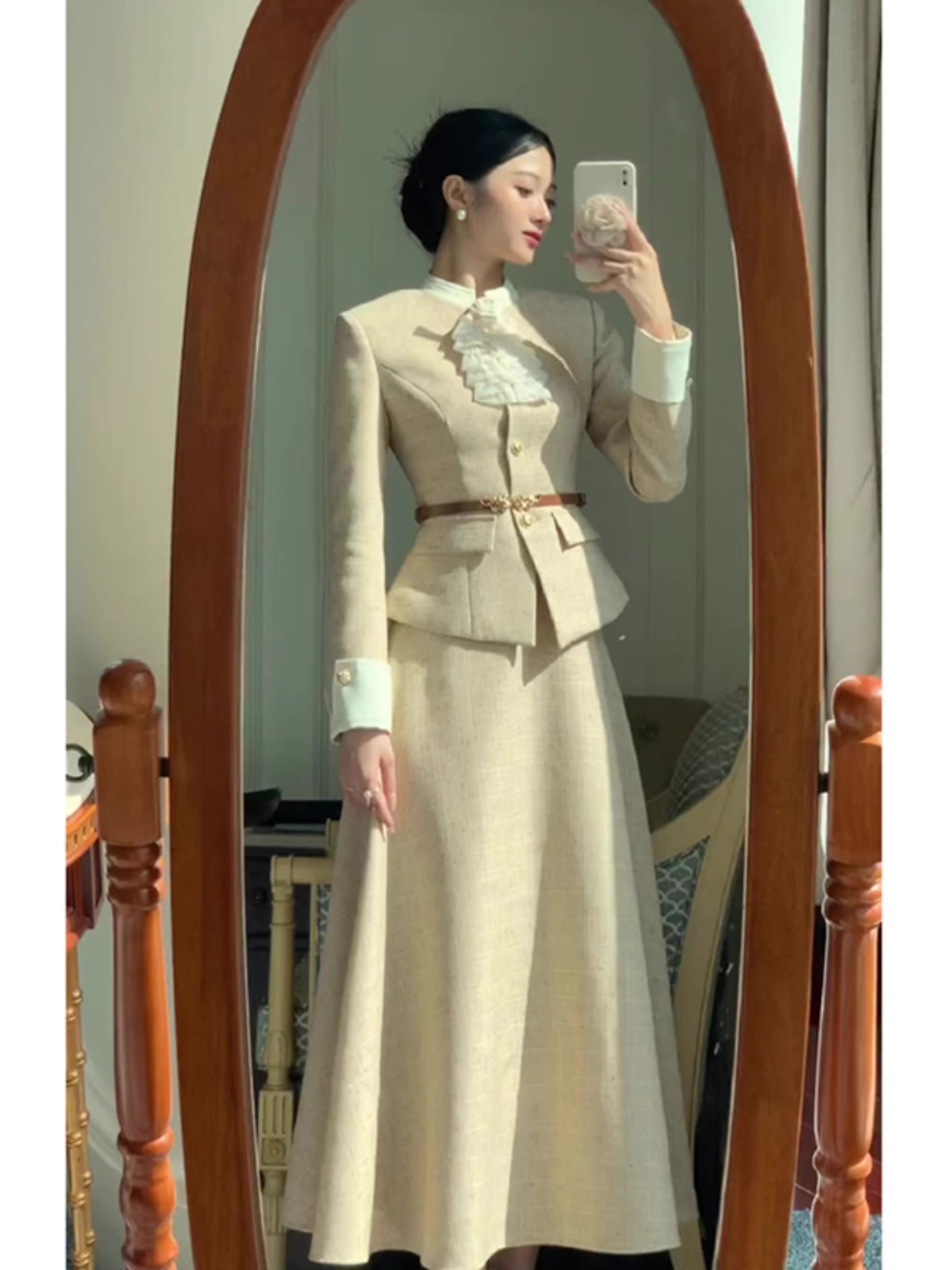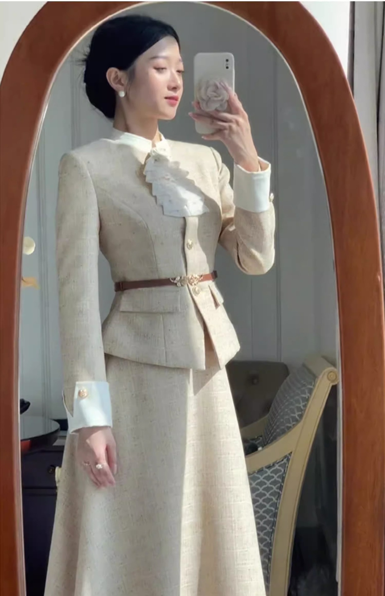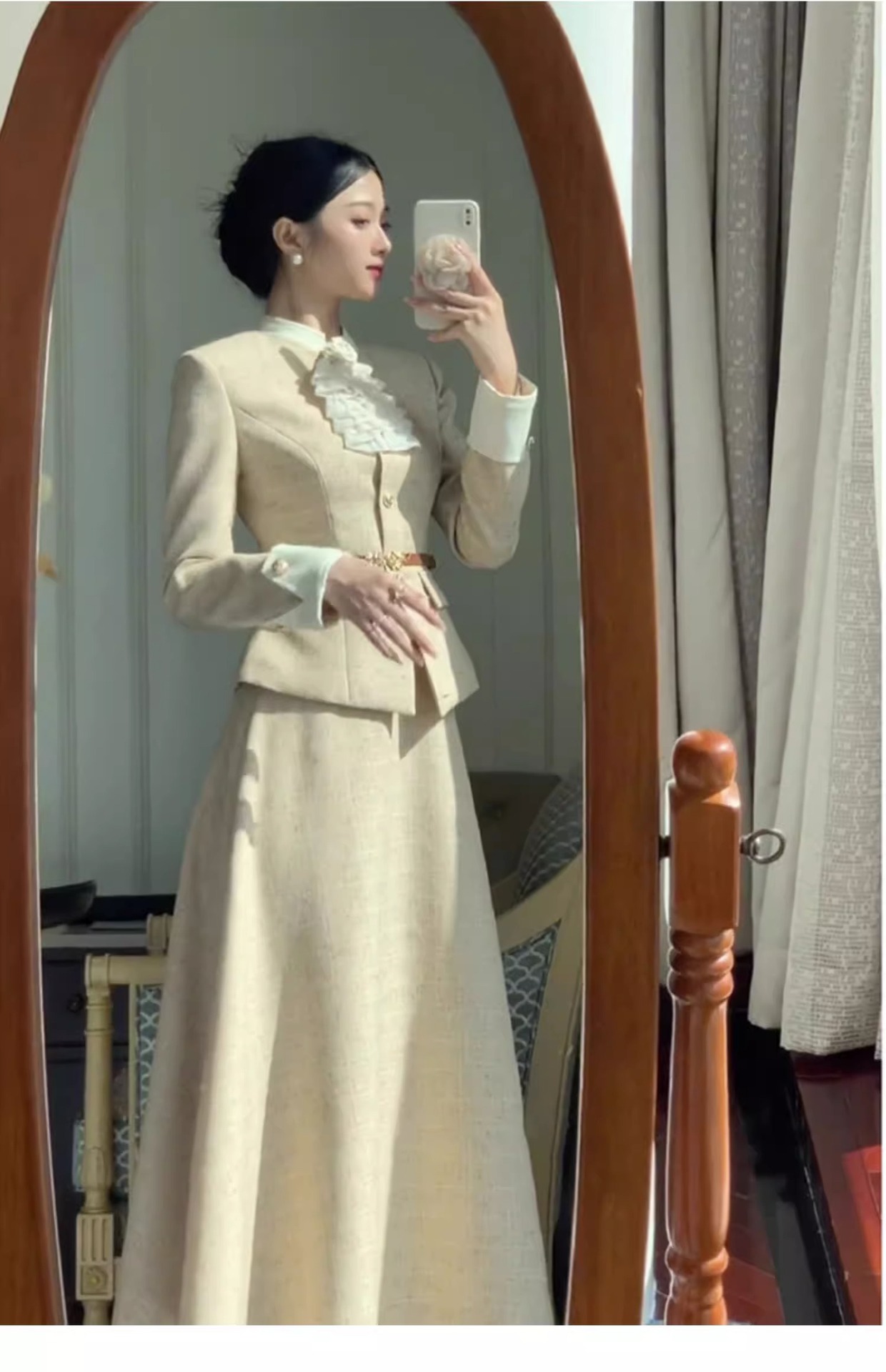 포춘 밸브 Qianjin Chanel 스타일 세트 스커트 여성의 가을 고급 우아한 사교계 고급 작은 서양식 새로운 중국 스타일 투피스 세트