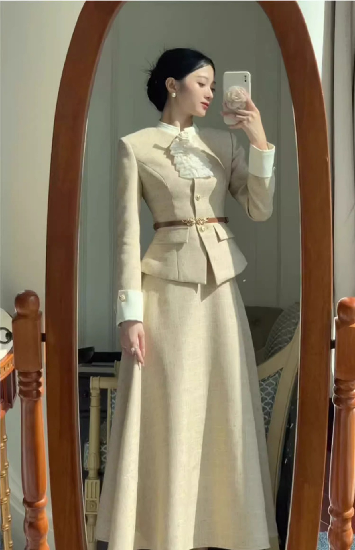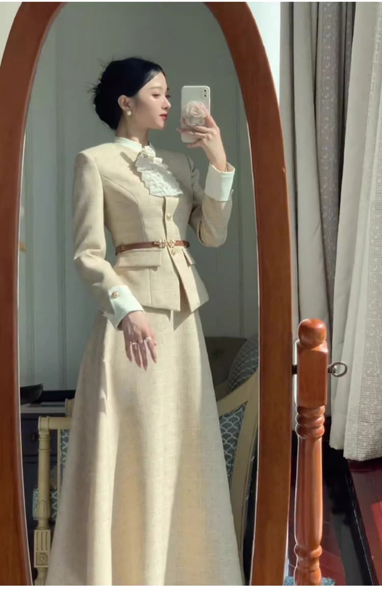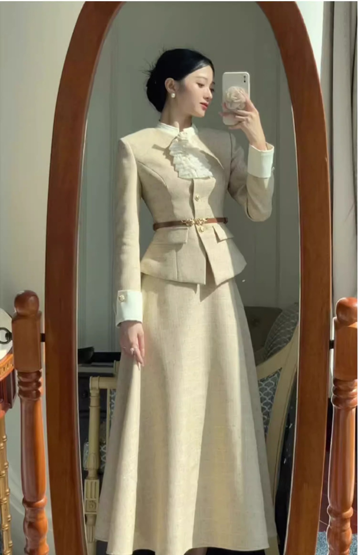 포춘 밸브 Qianjin Chanel 스타일 세트 스커트 여성의 가을 고급 우아한 사교계 고급 작은 서양식 새로운 중국 스타일 투피스 세트