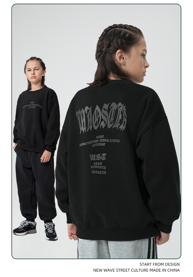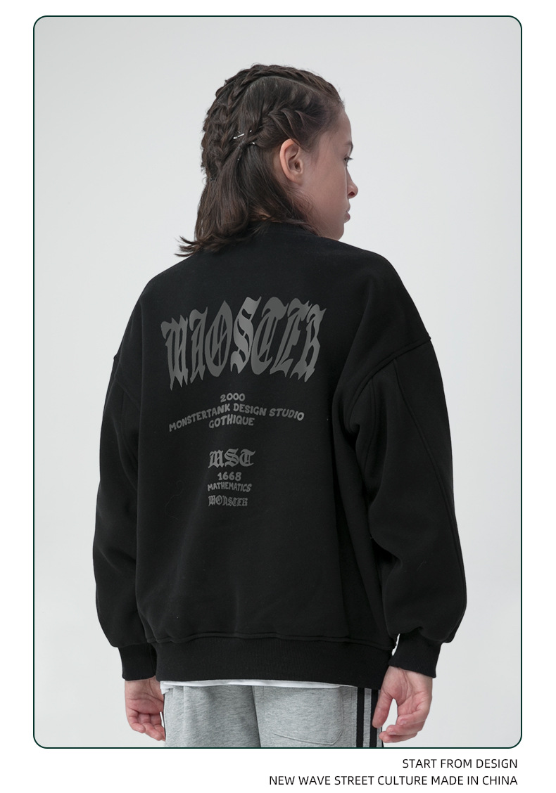 MT 아동복 2025 겨울 신상 남아용 플리스 스웨트셔츠 미국 고딕 스타일 프린트 중대형 아동용 따뜻한 긴팔스토어 가기