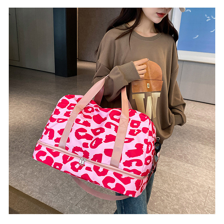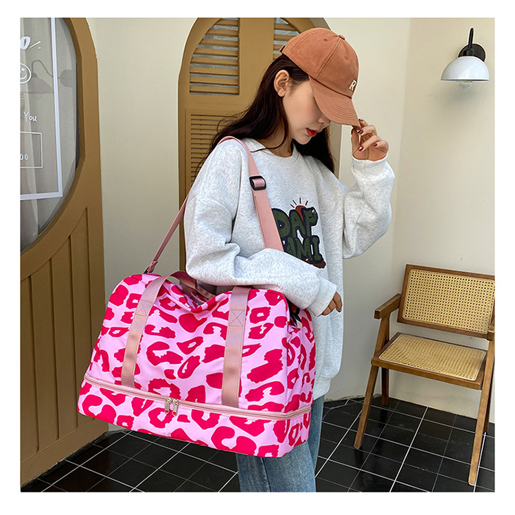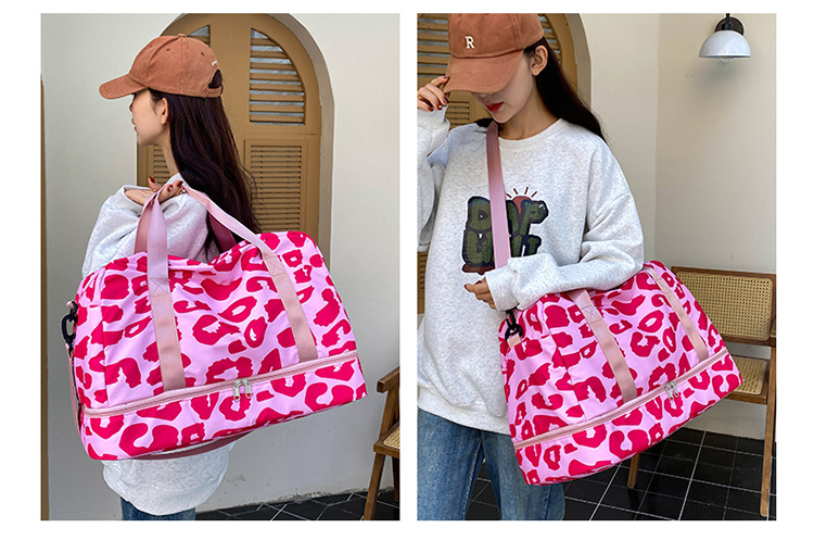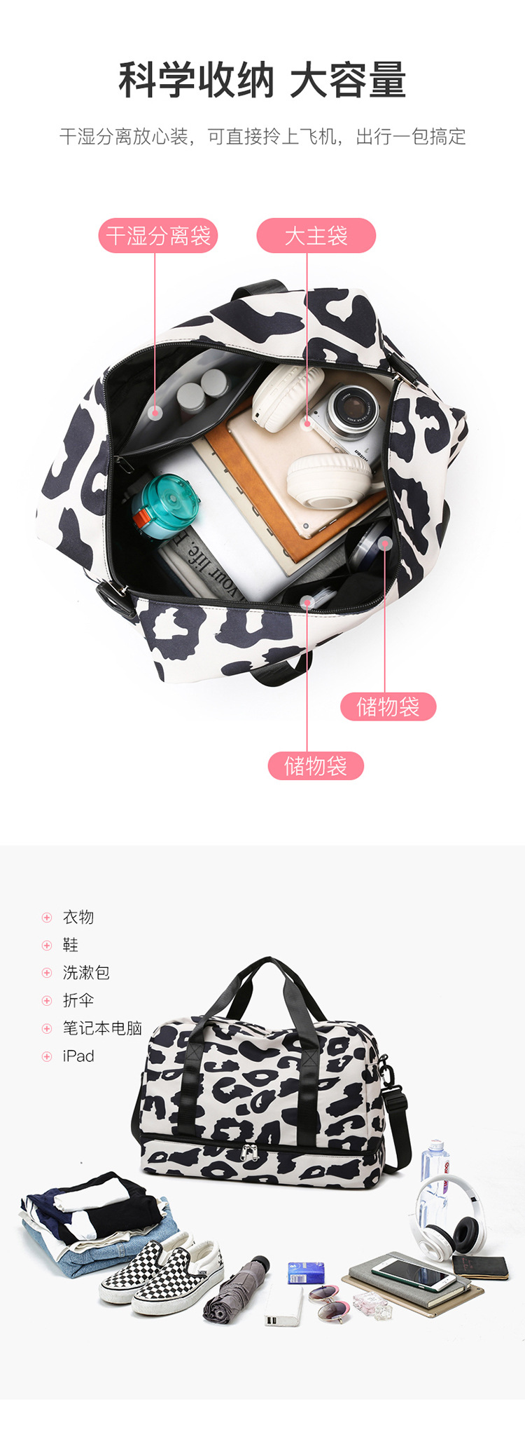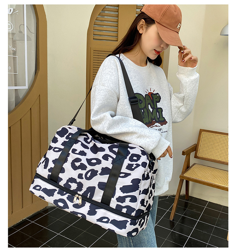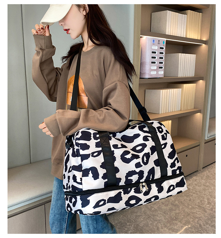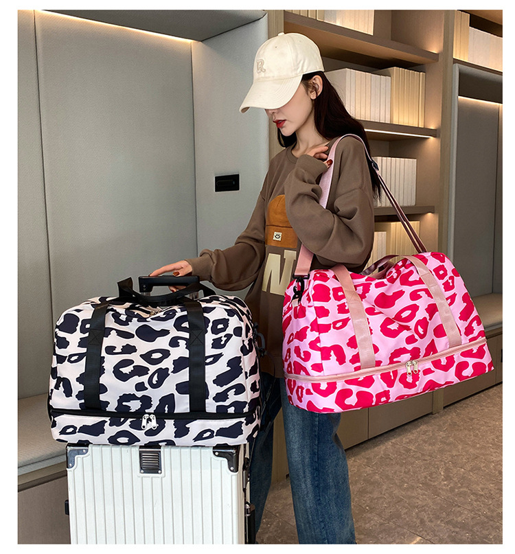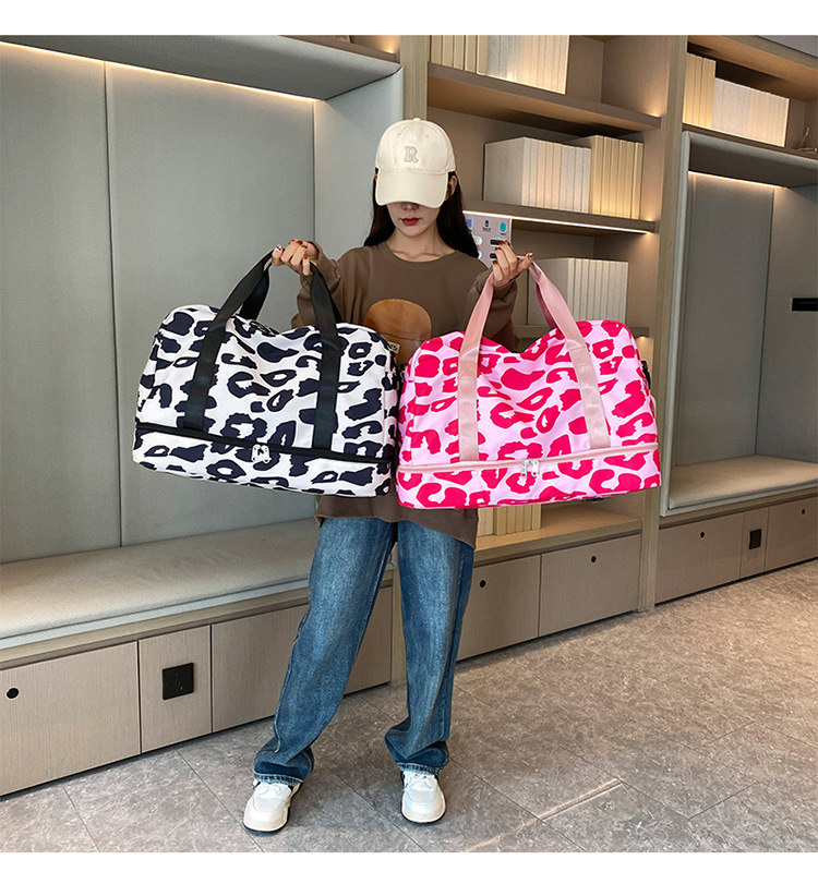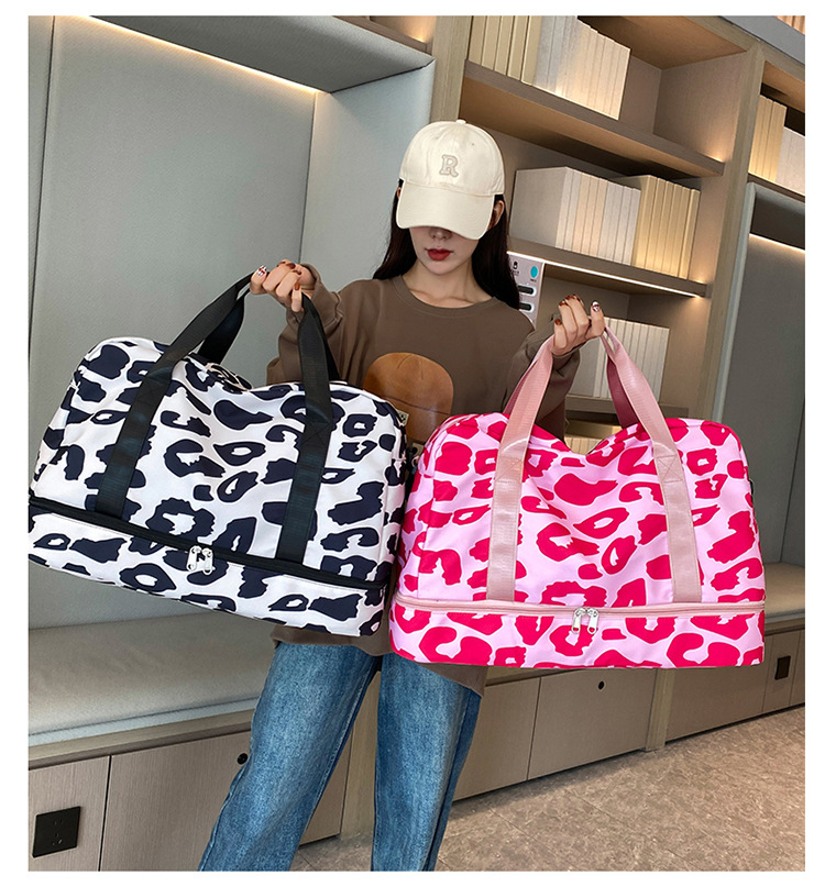 여성용 스포츠 피트니스 가방 레오파드 무늬 옥스포드 천 수하물 보관 가방 여성의 유행 휴대용 단거리 휴대용 여행 가방스토어 가기