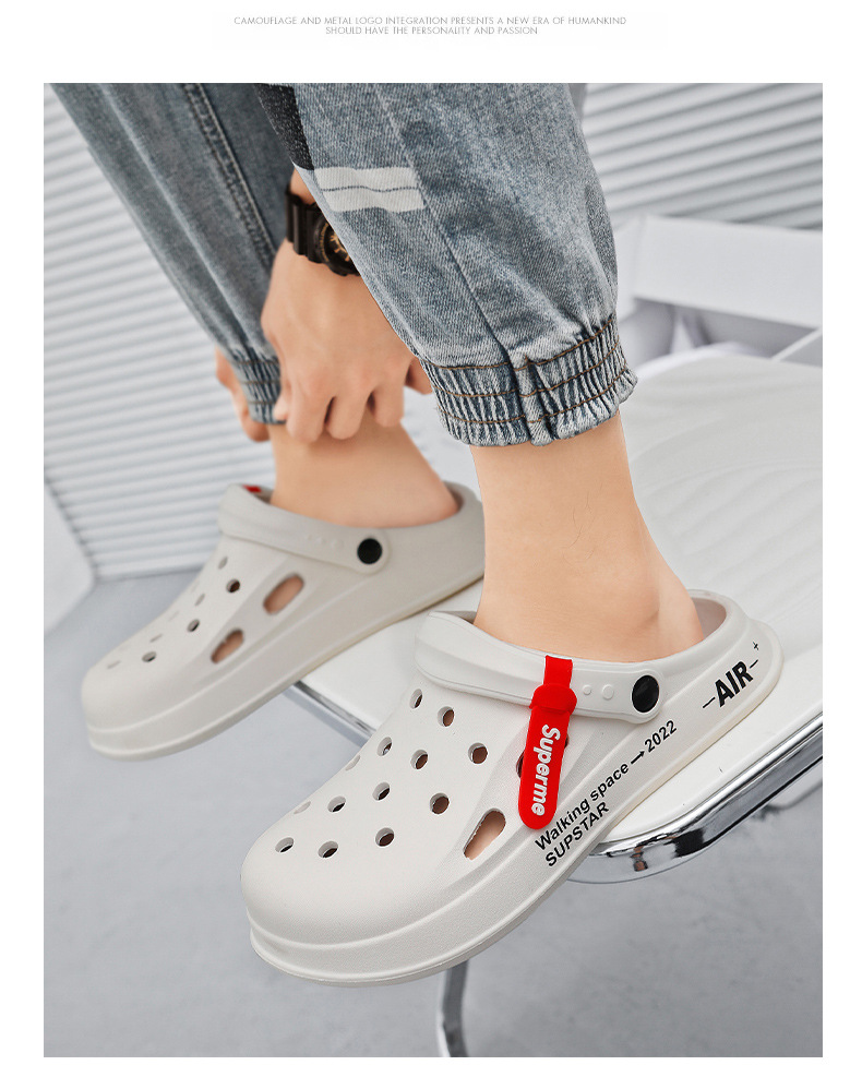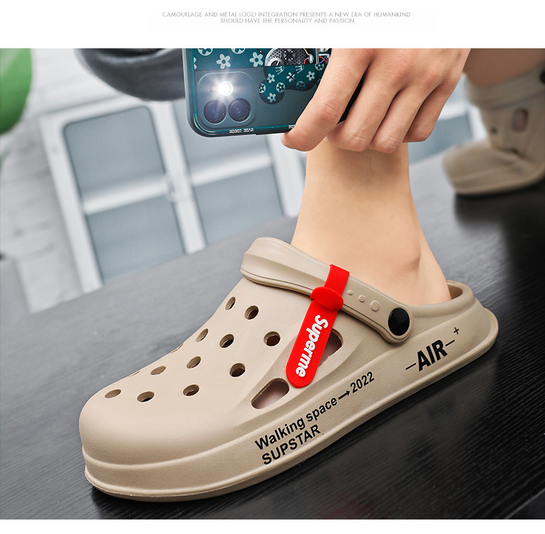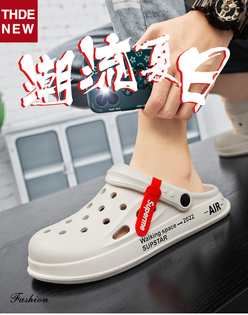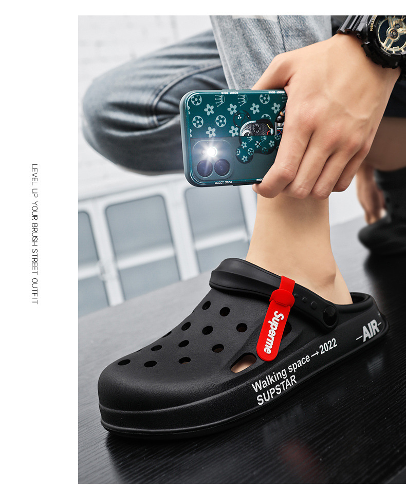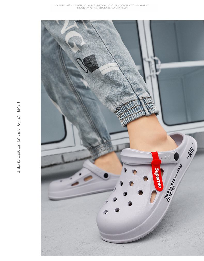 2023 크로스 보더 플러스 사이즈 홀 신발 남자의 여름 미끄럼 방지 Baotou 양방향 샌들 캐주얼 겉옷 비치 슬리퍼스토어 가기