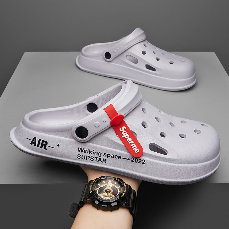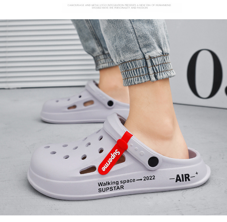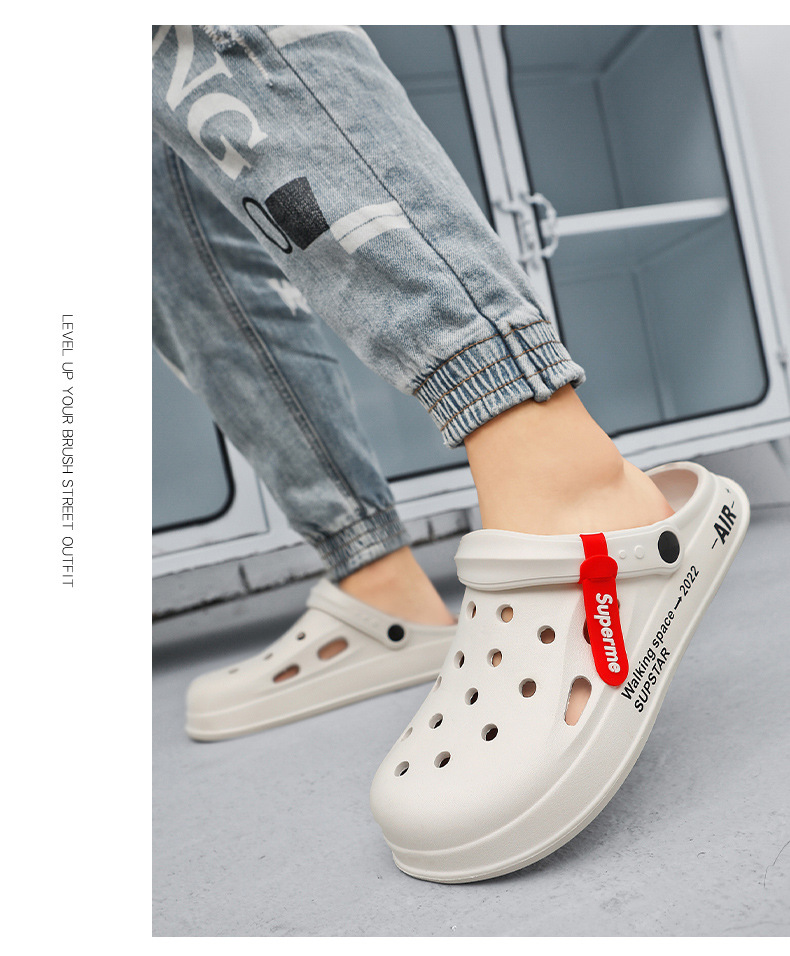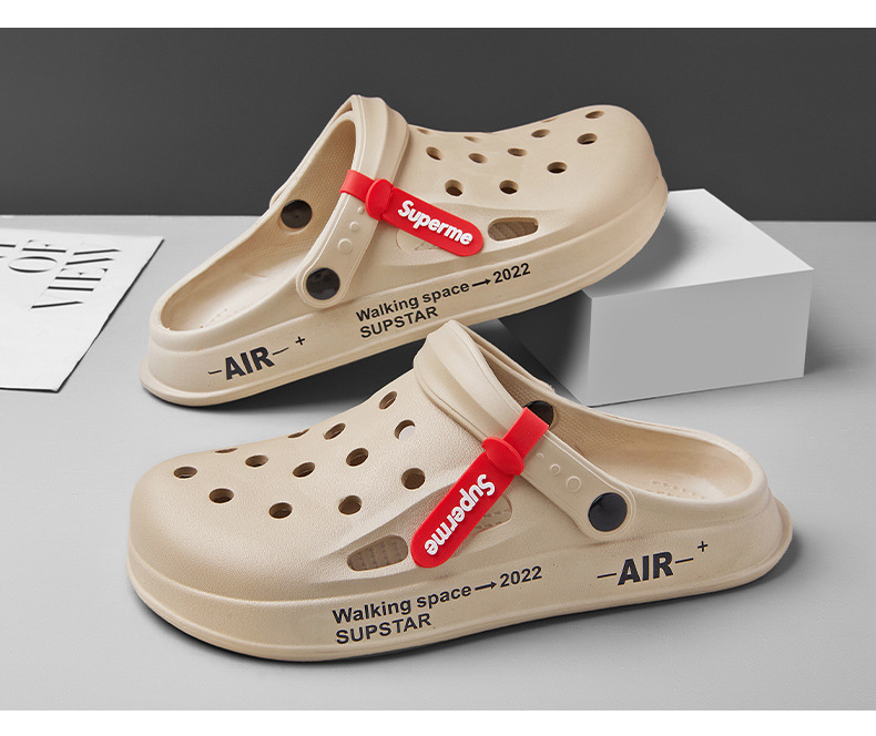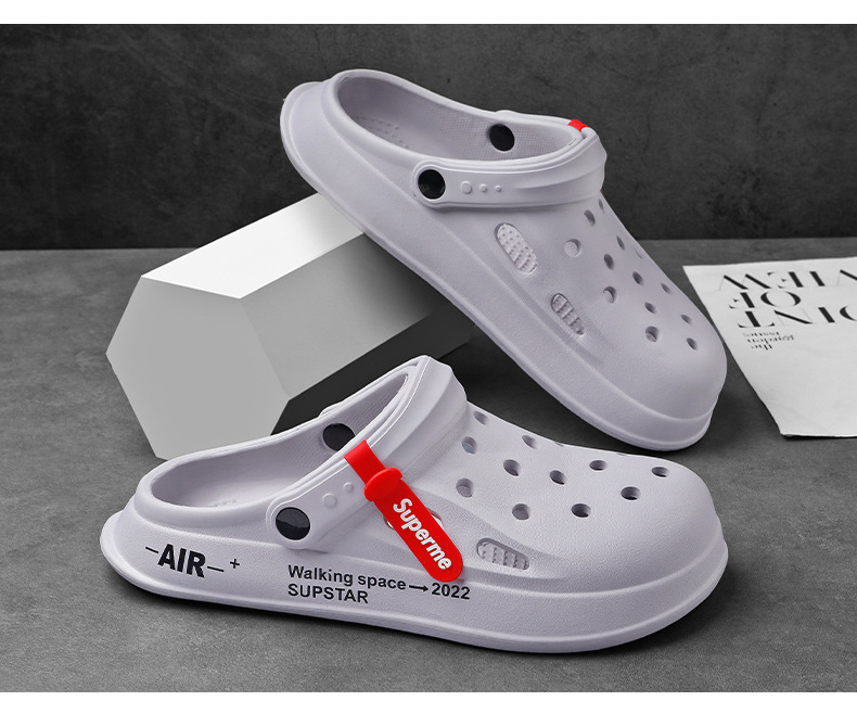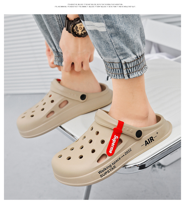 2023 크로스 보더 플러스 사이즈 홀 신발 남자의 여름 미끄럼 방지 Baotou 양방향 샌들 캐주얼 겉옷 비치 슬리퍼스토어 가기