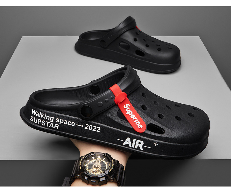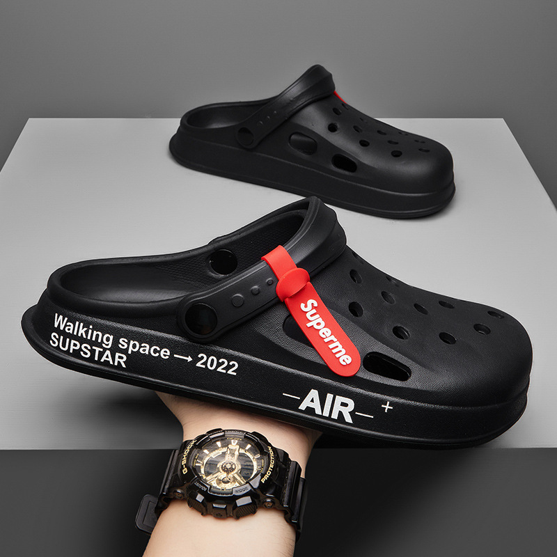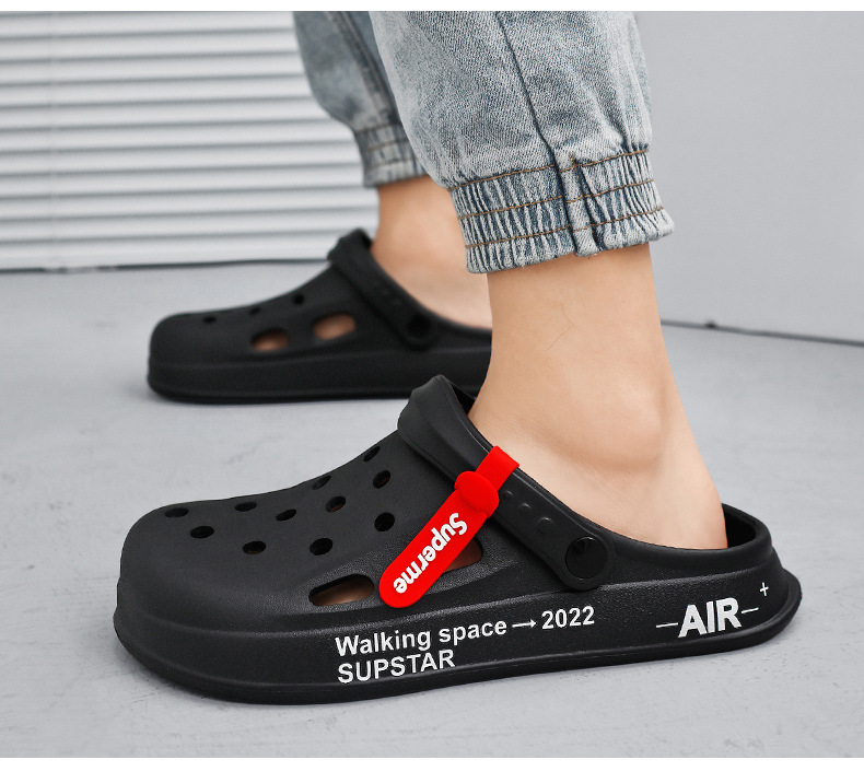 2023 크로스 보더 플러스 사이즈 홀 신발 남자의 여름 미끄럼 방지 Baotou 양방향 샌들 캐주얼 겉옷 비치 슬리퍼