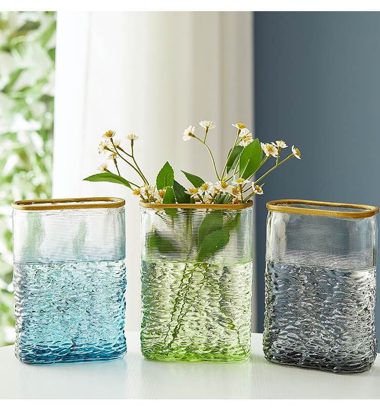 간단한 가벼운 고급 가죽 핸드 헬드 유리 꽃병 투명 수경 장미 백합 꽃 홈 식탁 장식 장식품스토어 가기