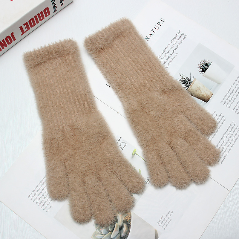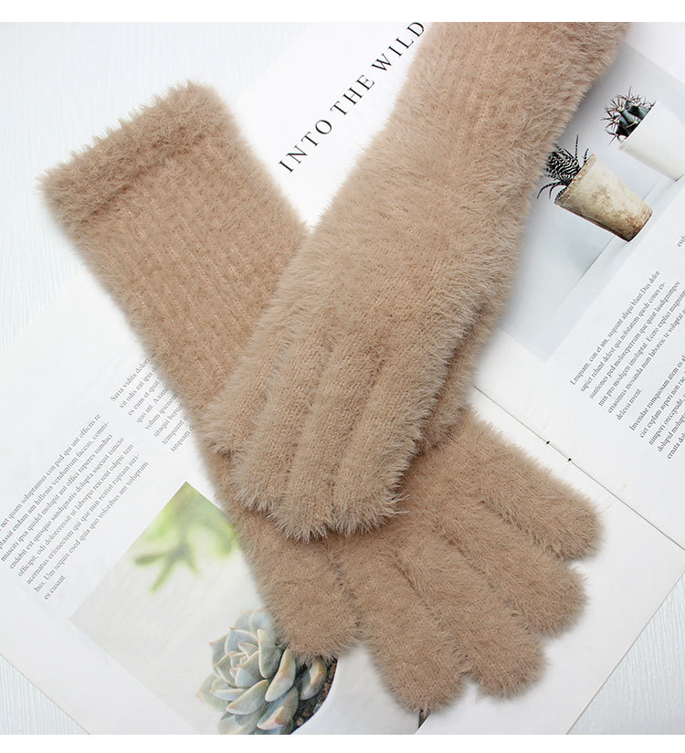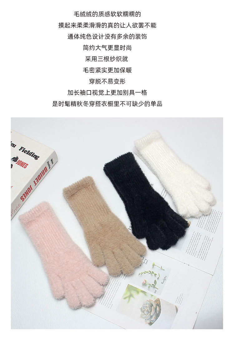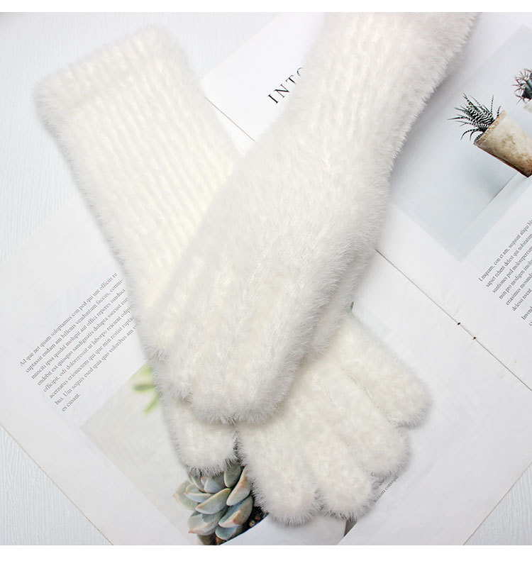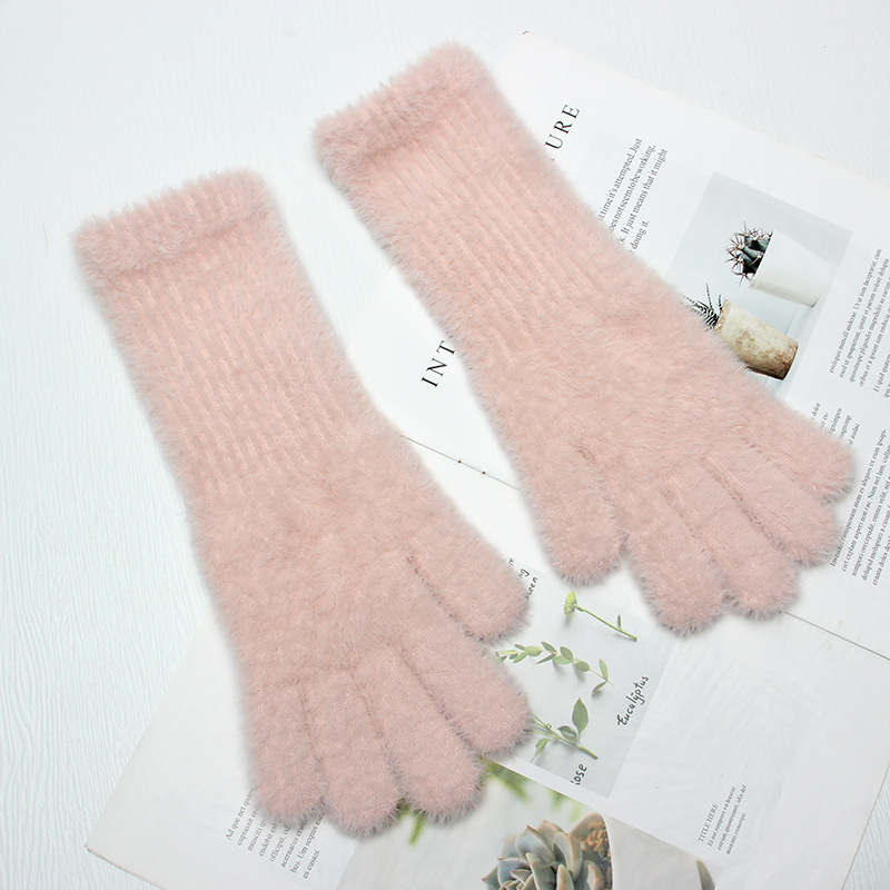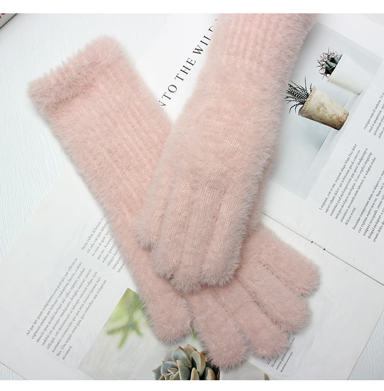 가을과 겨울 봉제 니트 장갑 여성용 겨울 한국 스타일 소녀의 심장 귀여운 긴 손목 따뜻한 다섯 손가락 터치 스크린 학생용 손 양말