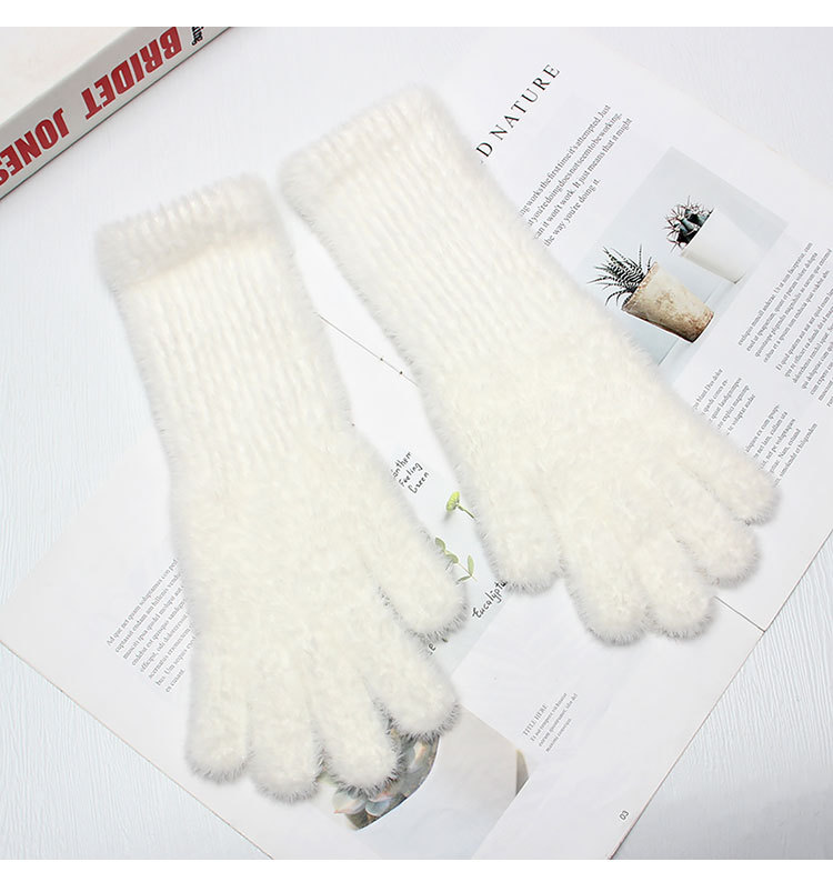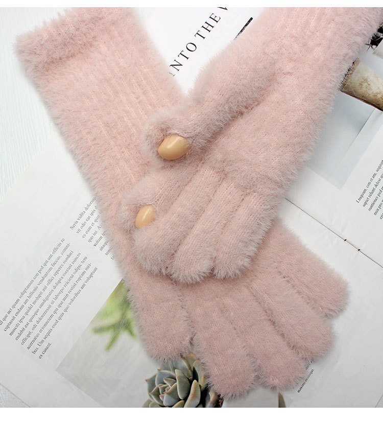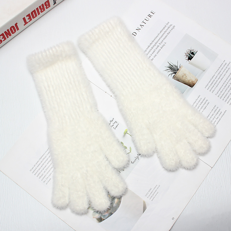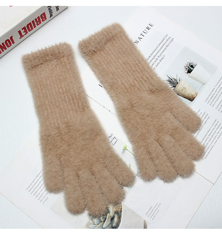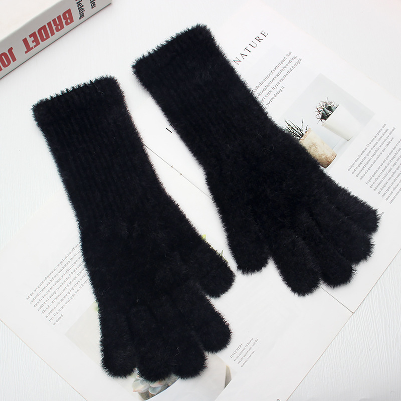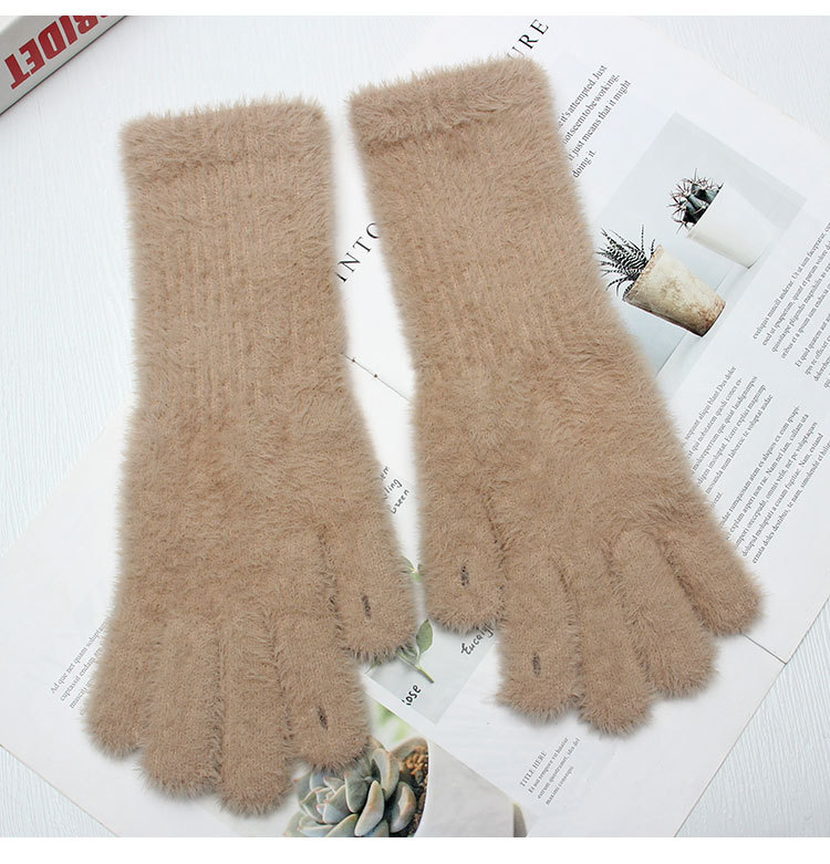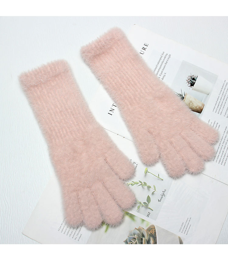 가을과 겨울 봉제 니트 장갑 여성용 겨울 한국 스타일 소녀의 심장 귀여운 긴 손목 따뜻한 다섯 손가락 터치 스크린 학생용 손 양말