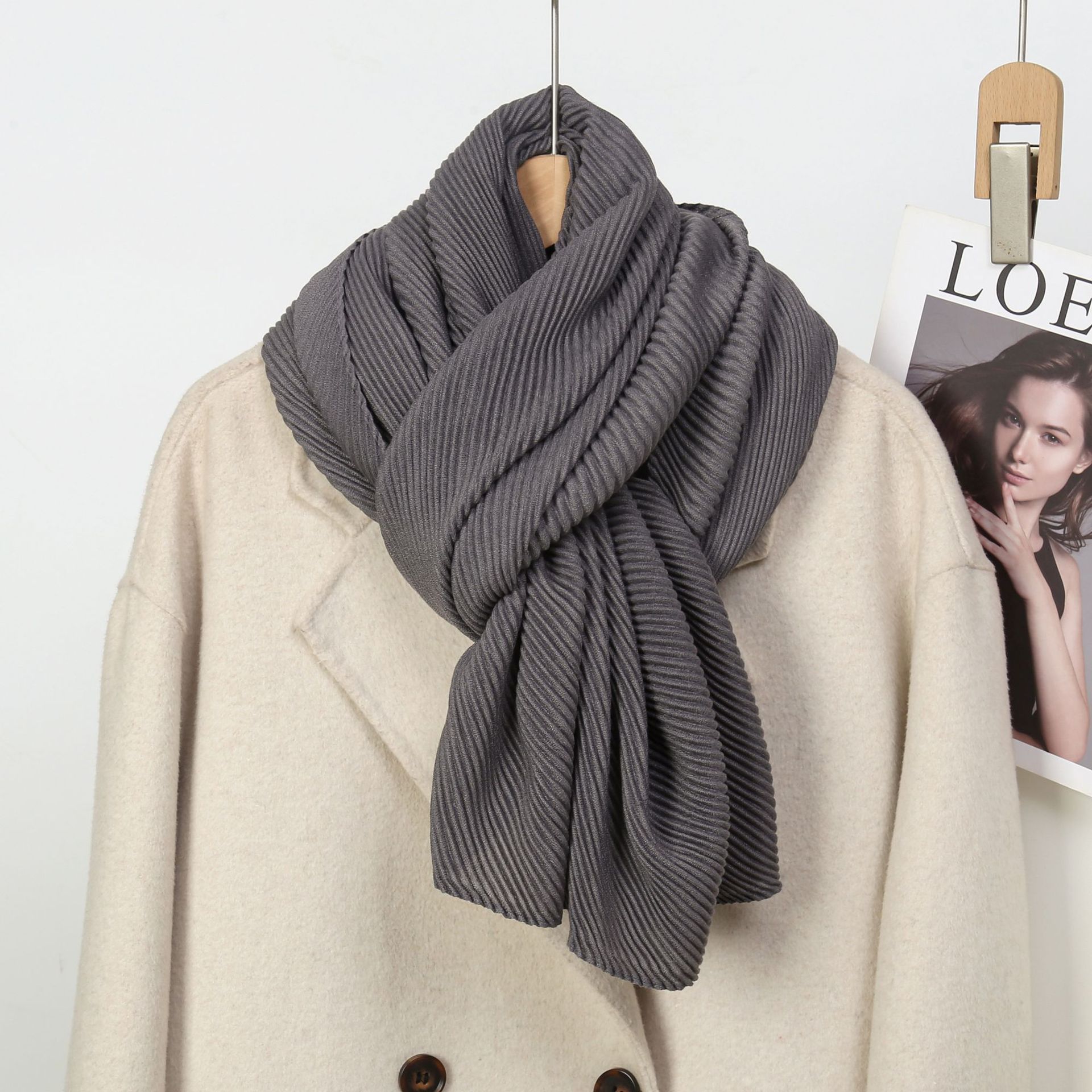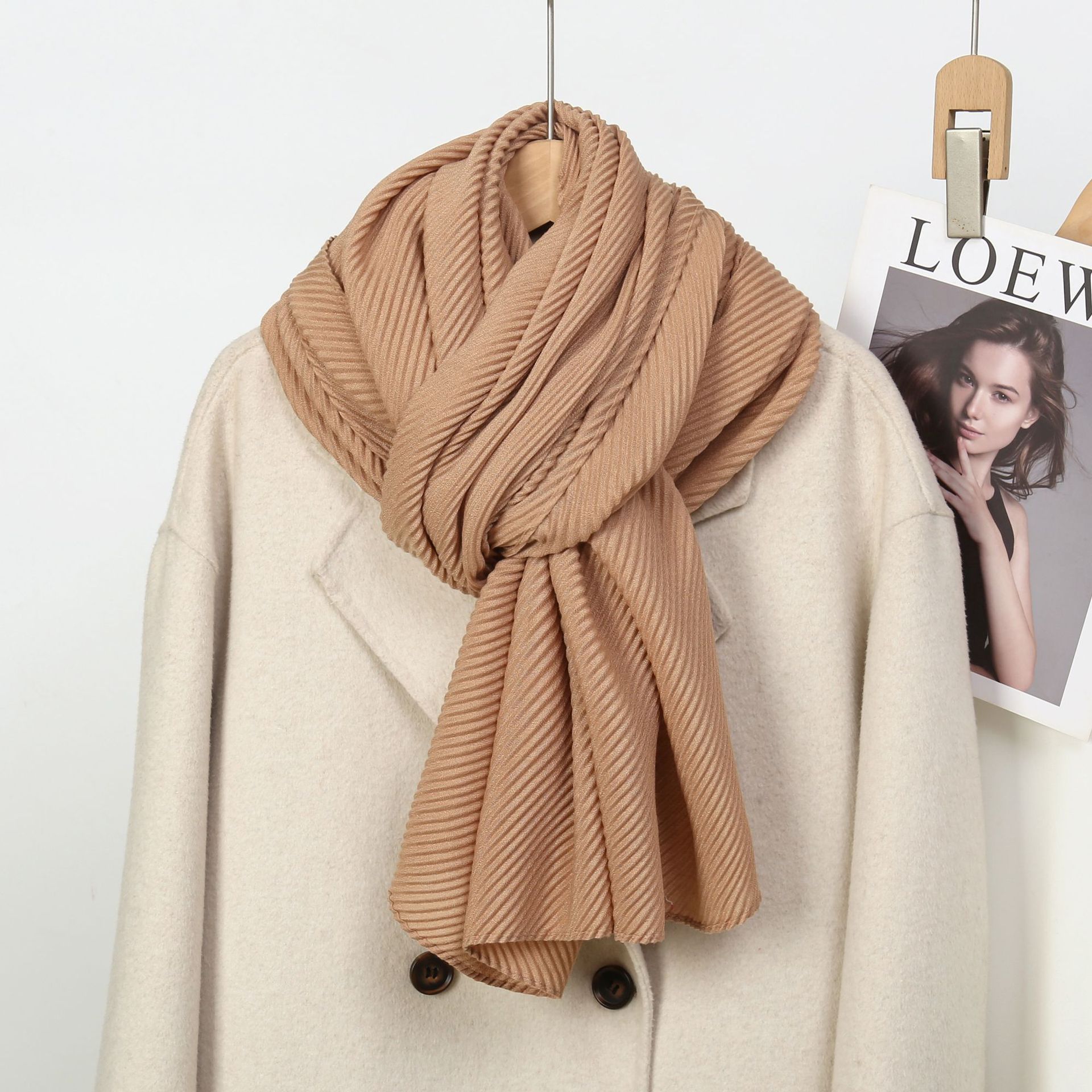 三宅风格 褶皱纹理围巾是穿搭的好搭档,搭配衣服通透立体,有质感,面料轻柔亲肤,强烈推荐!
