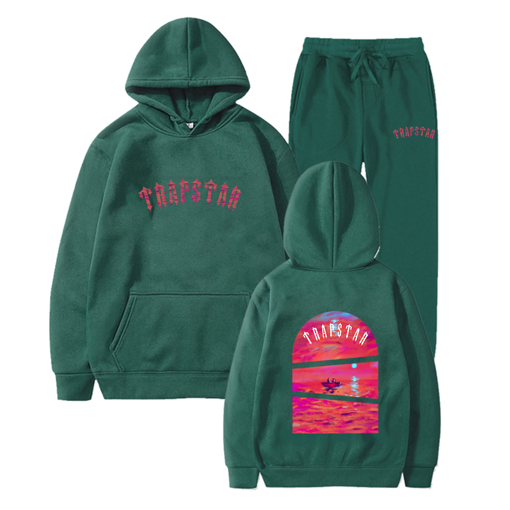 국경 간 외국 무역 TRAPSTAR 편지 인쇄 가을과 겨울 새로운 남성 후드 스웨터 운동복 세트