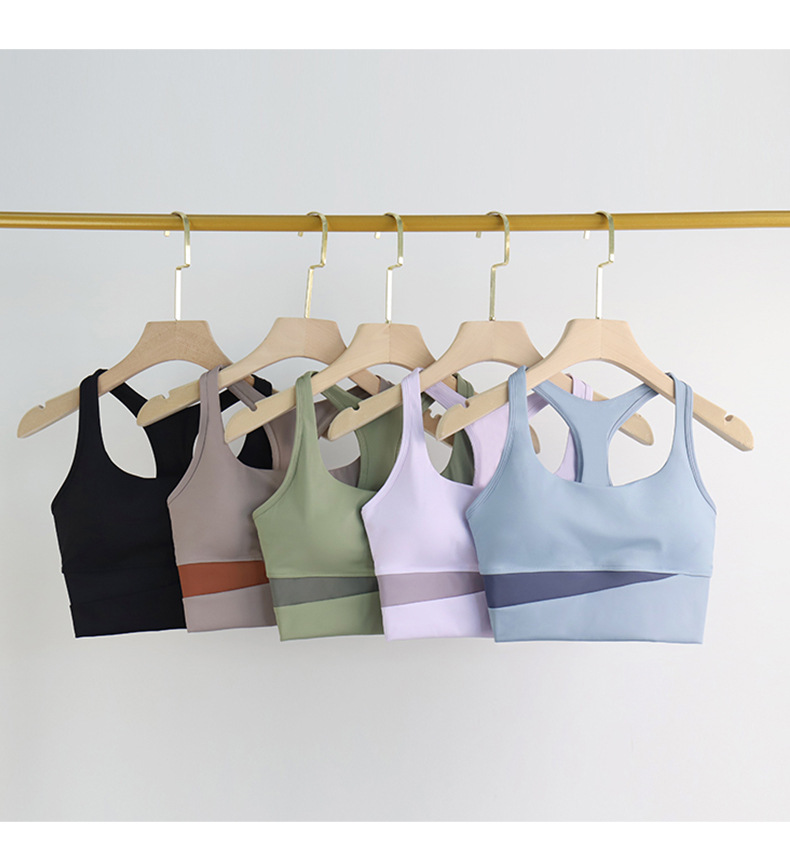 [엄격한 선택] 대비 색상 스포츠 속옷 충격 방지 고강도 원피스 가슴 패드 겉옷 여성용 뷰티 백 요가 조끼스토어 가기
