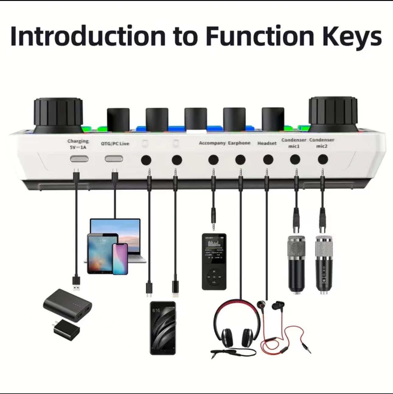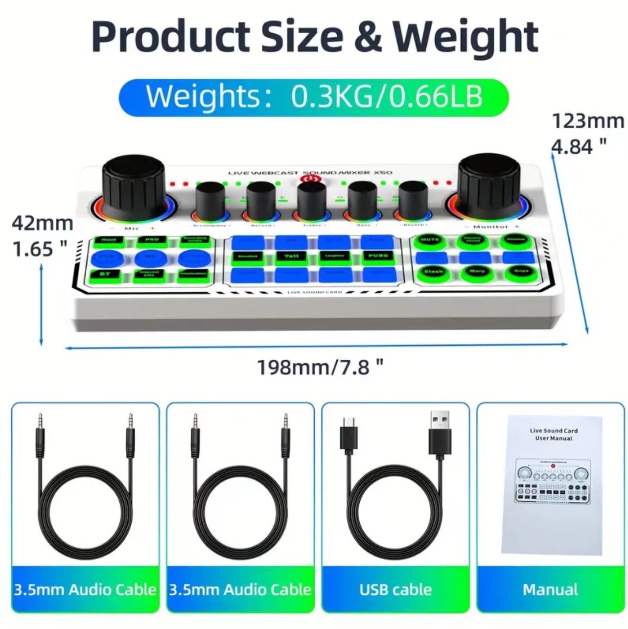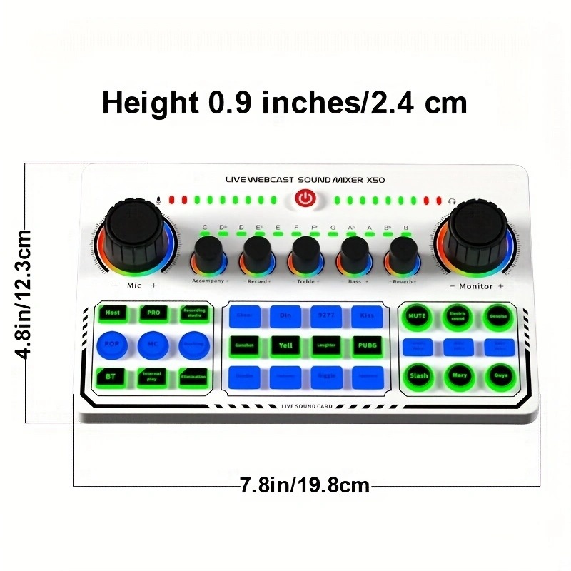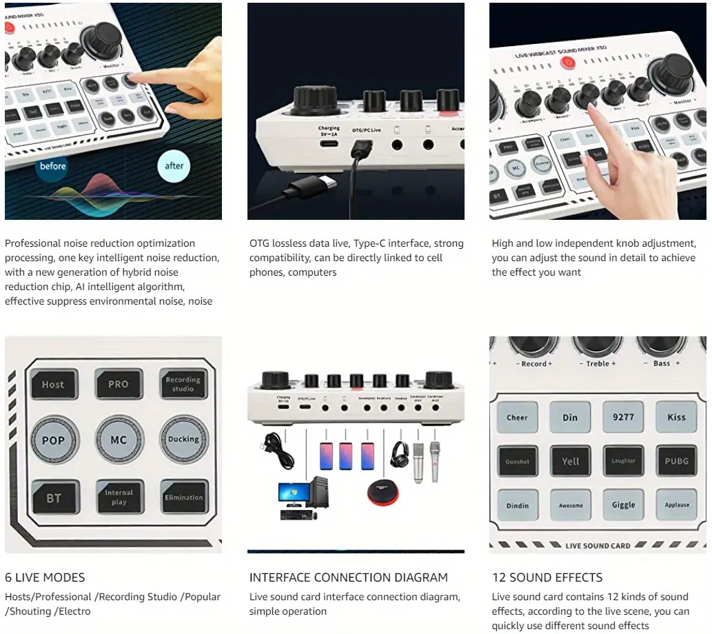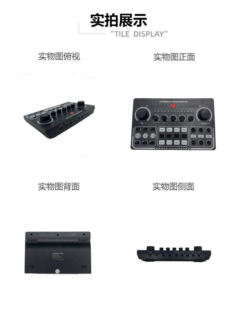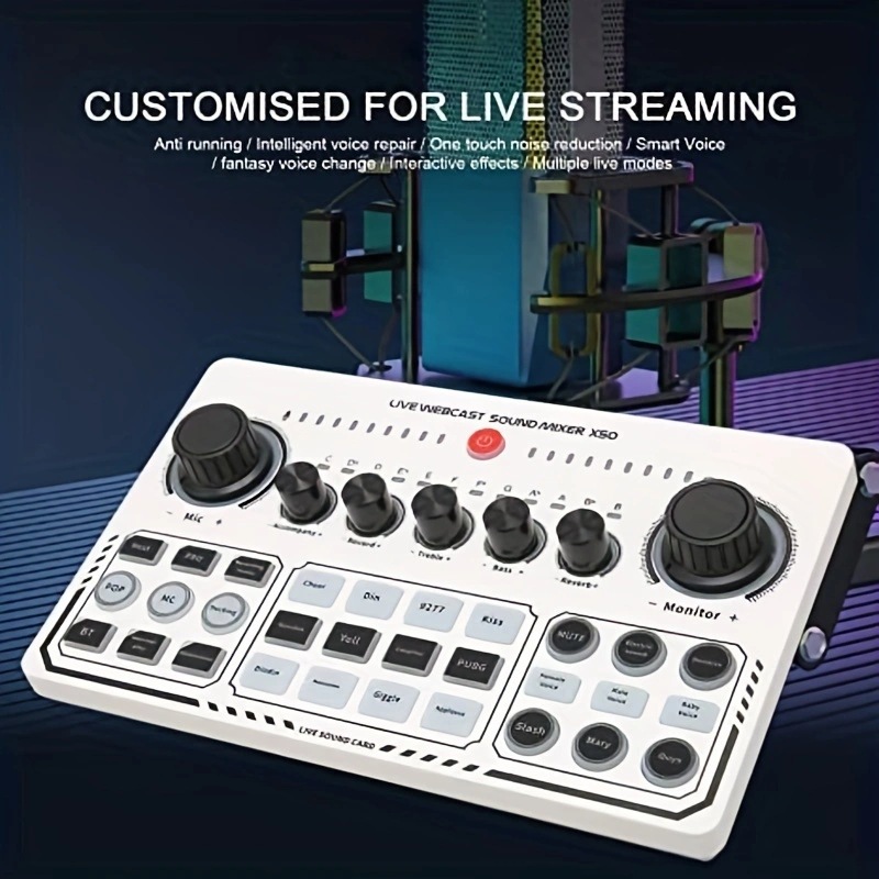 X50 라이브 사운드 카드 흑백 모델 영어 버전 믹서 컴퓨터 및 휴대폰 녹음 지원 전용 마이크