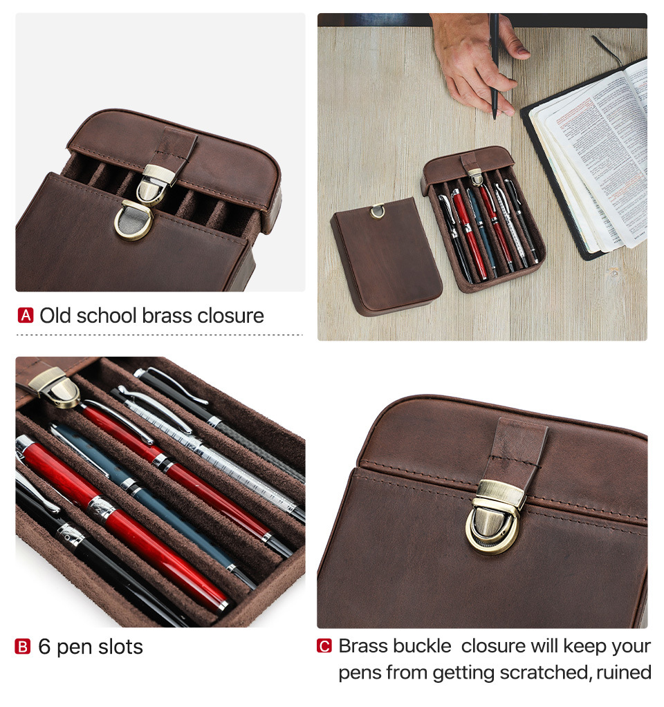 소가죽 펜 상자 수제 6 팩 여행 사무실 잠금 장치 분리형 서랍 펜 보관 상자 도매스토어 가기