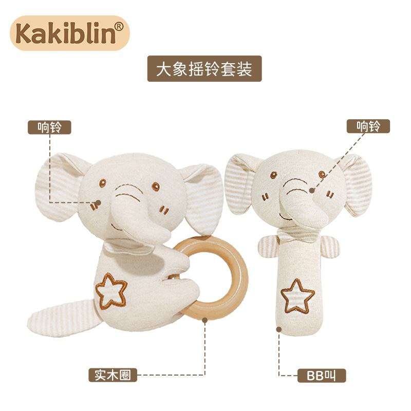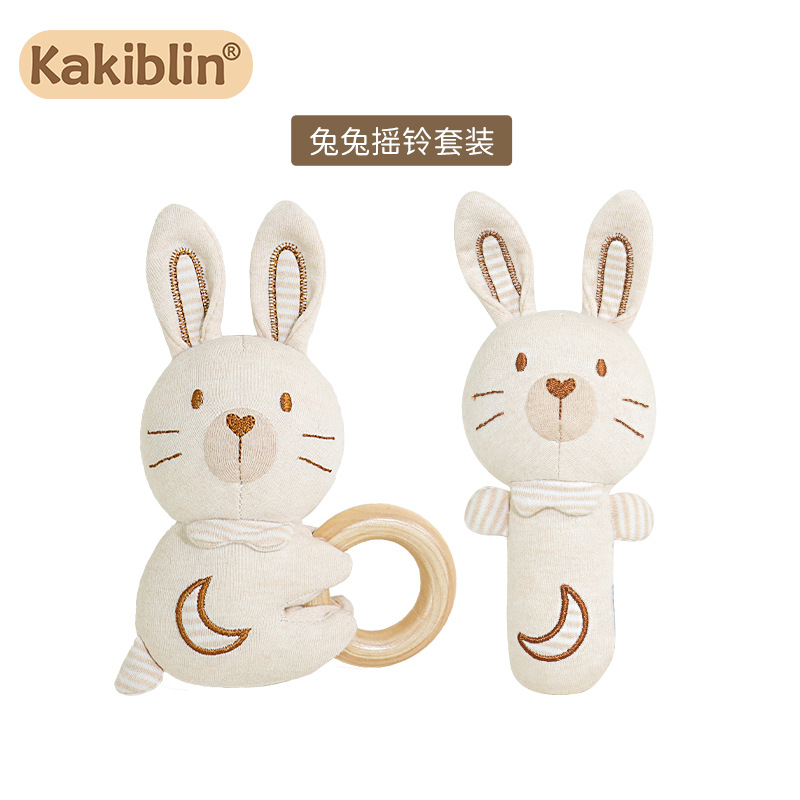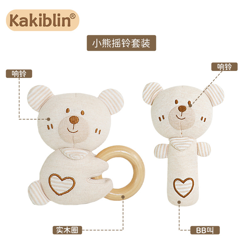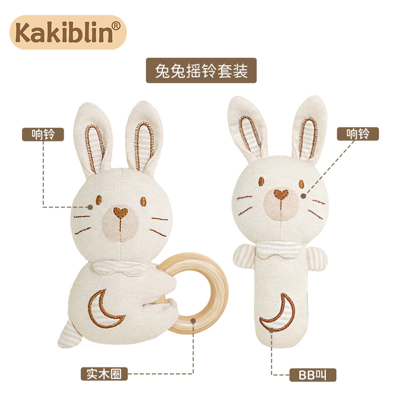 kakiblin婴儿摇铃套装宝宝可啃咬有机棉安抚玩具新生满月礼物现货