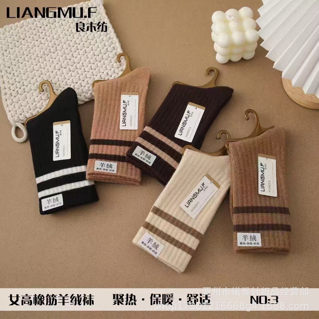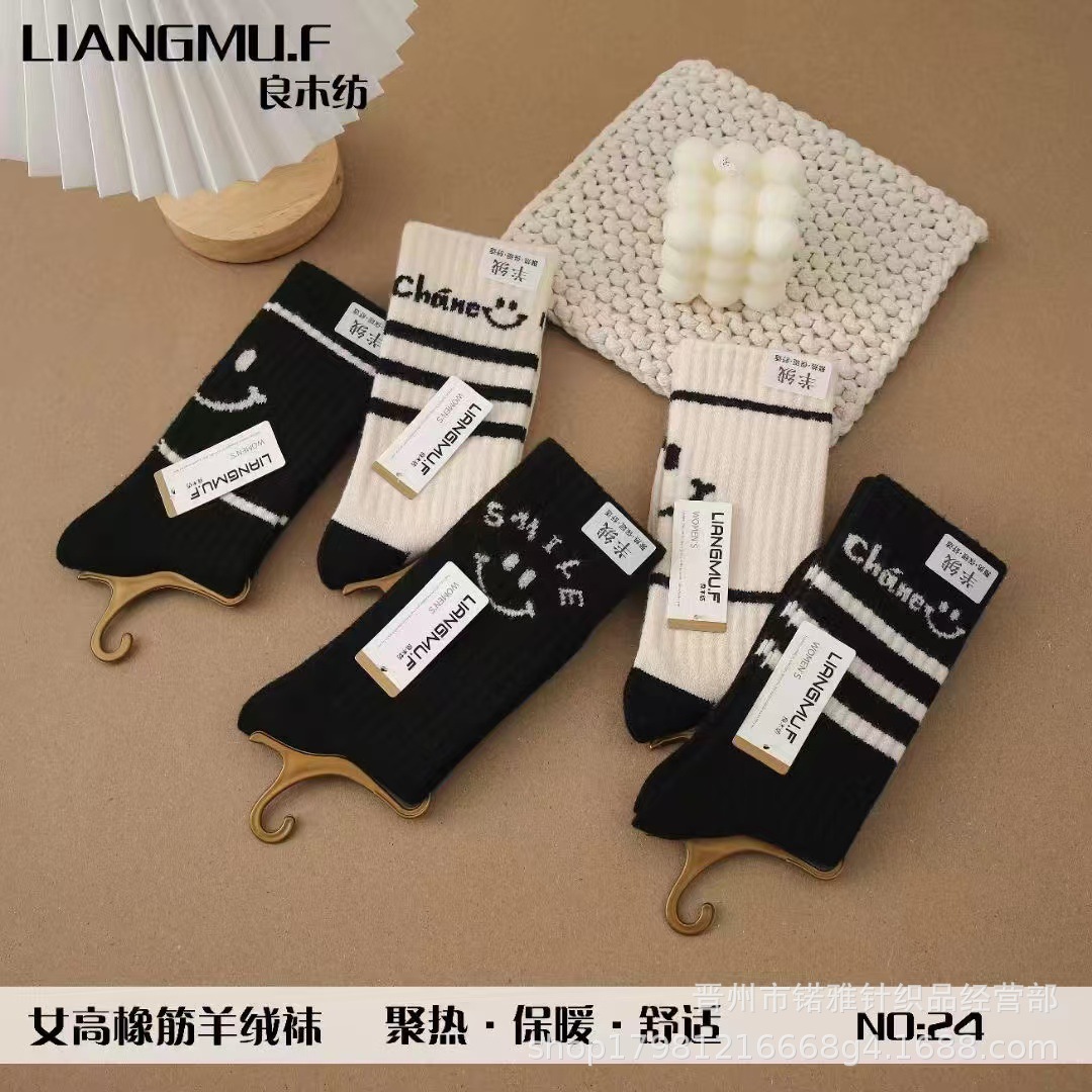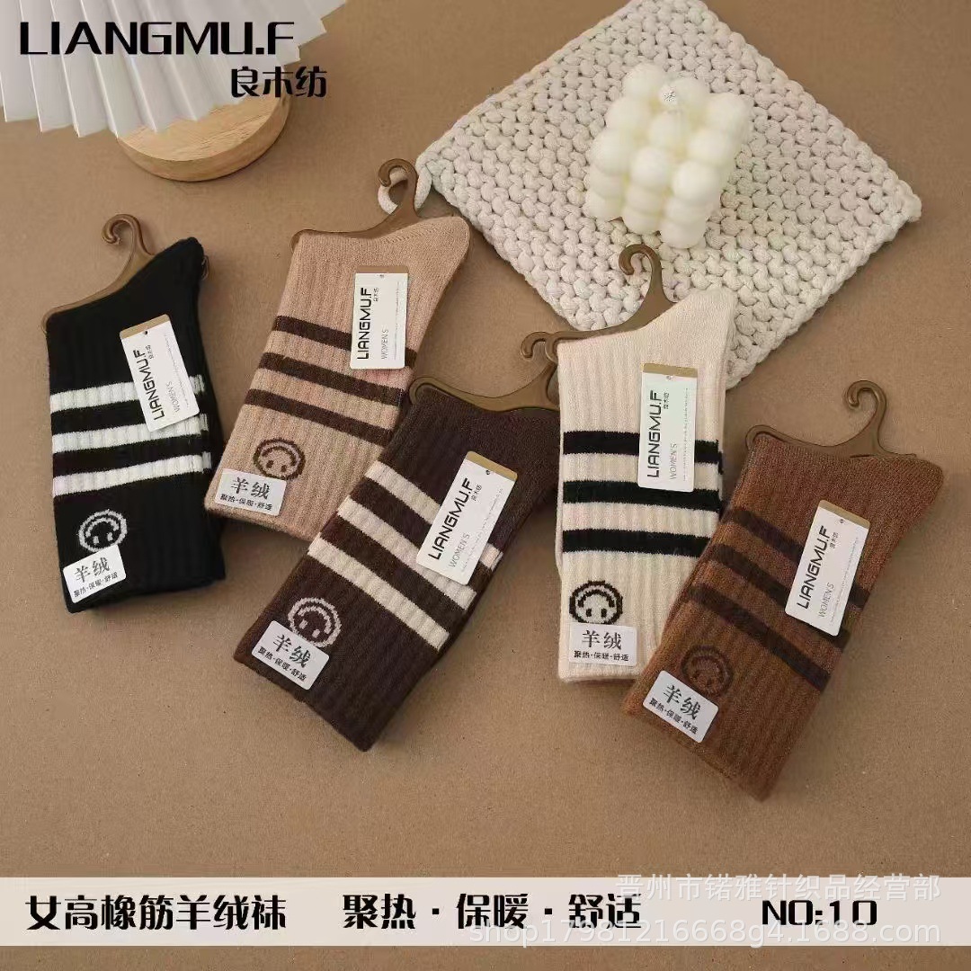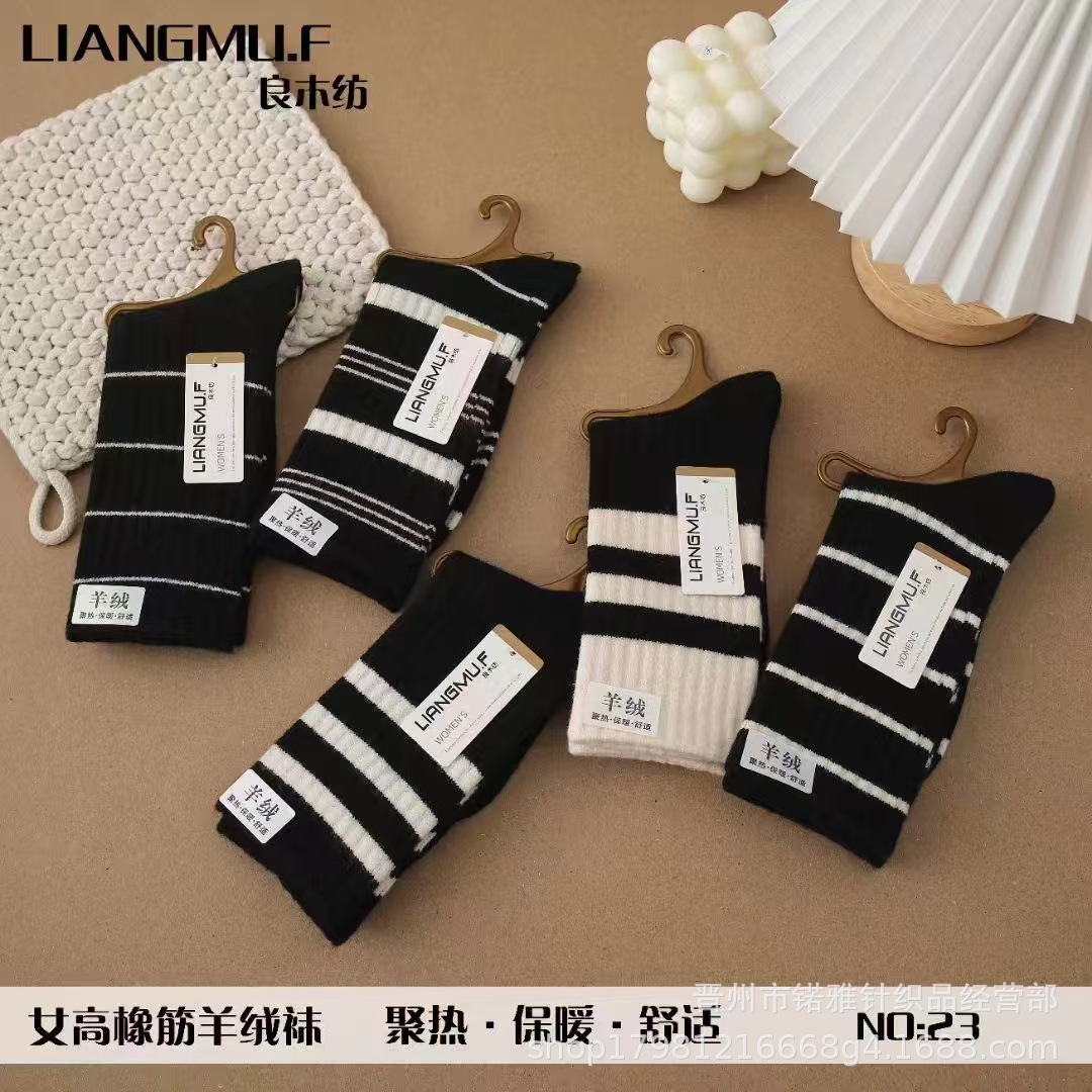 가을과 겨울 Kaisen 고층 캐시미어 여성 유행 양말 유행 긴 배럴 스택 블랙 다크 브라운 학생 양말스토어 가기