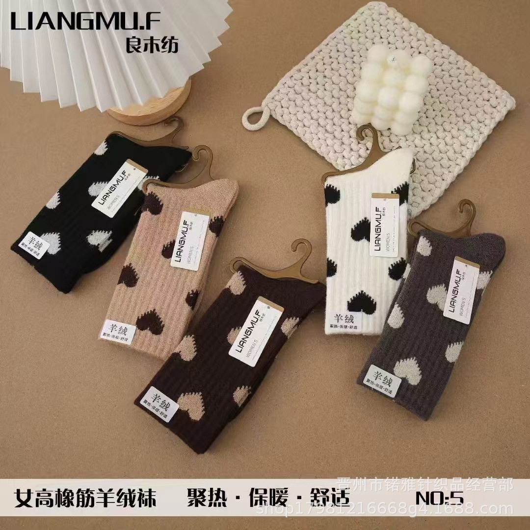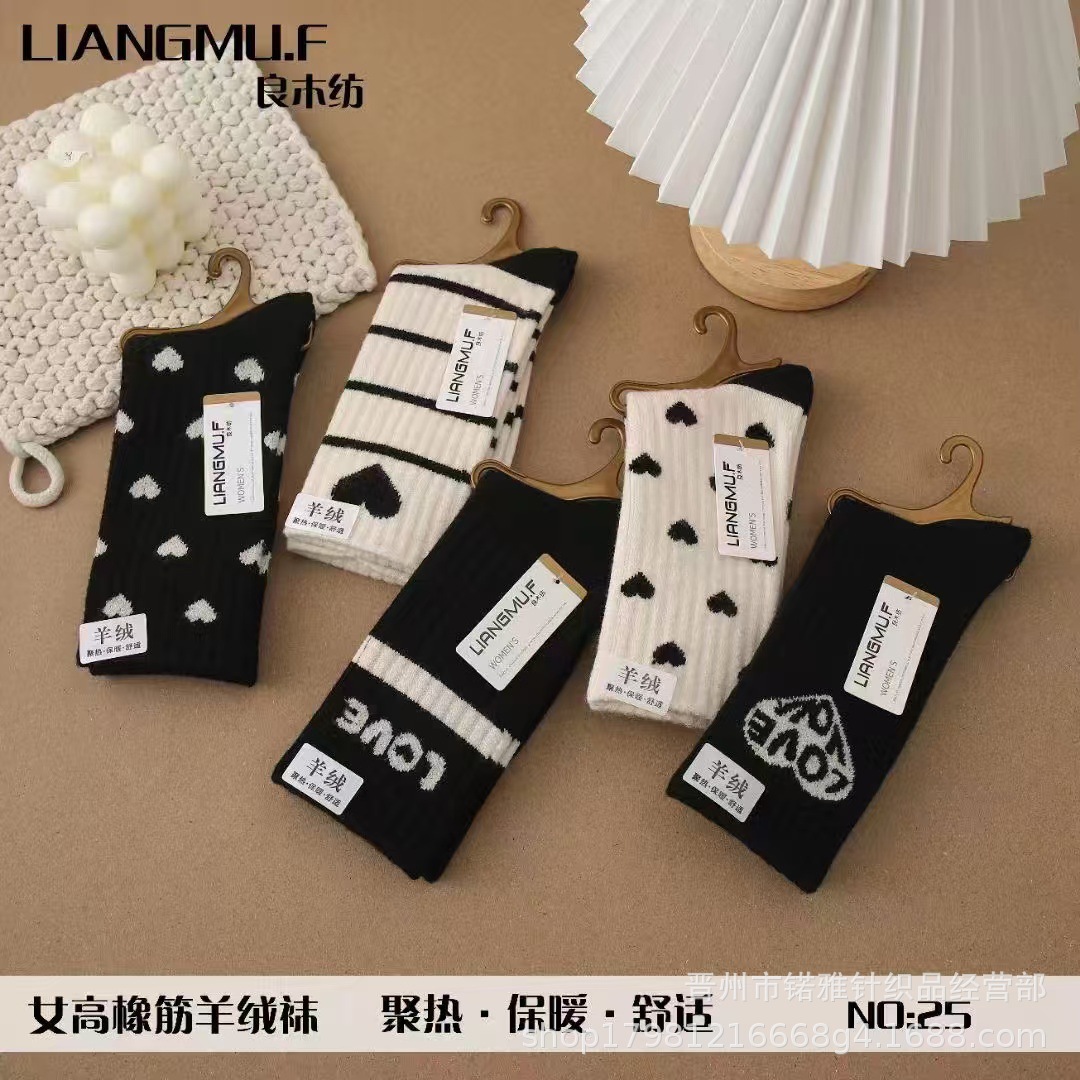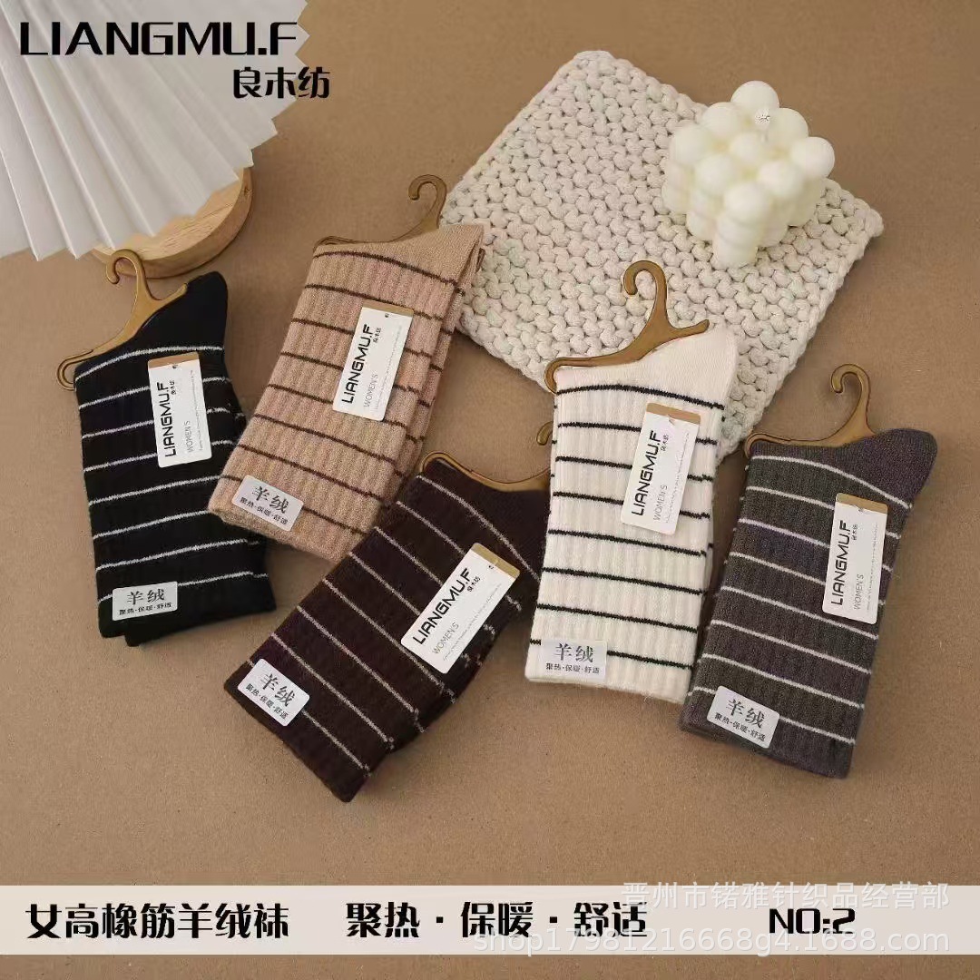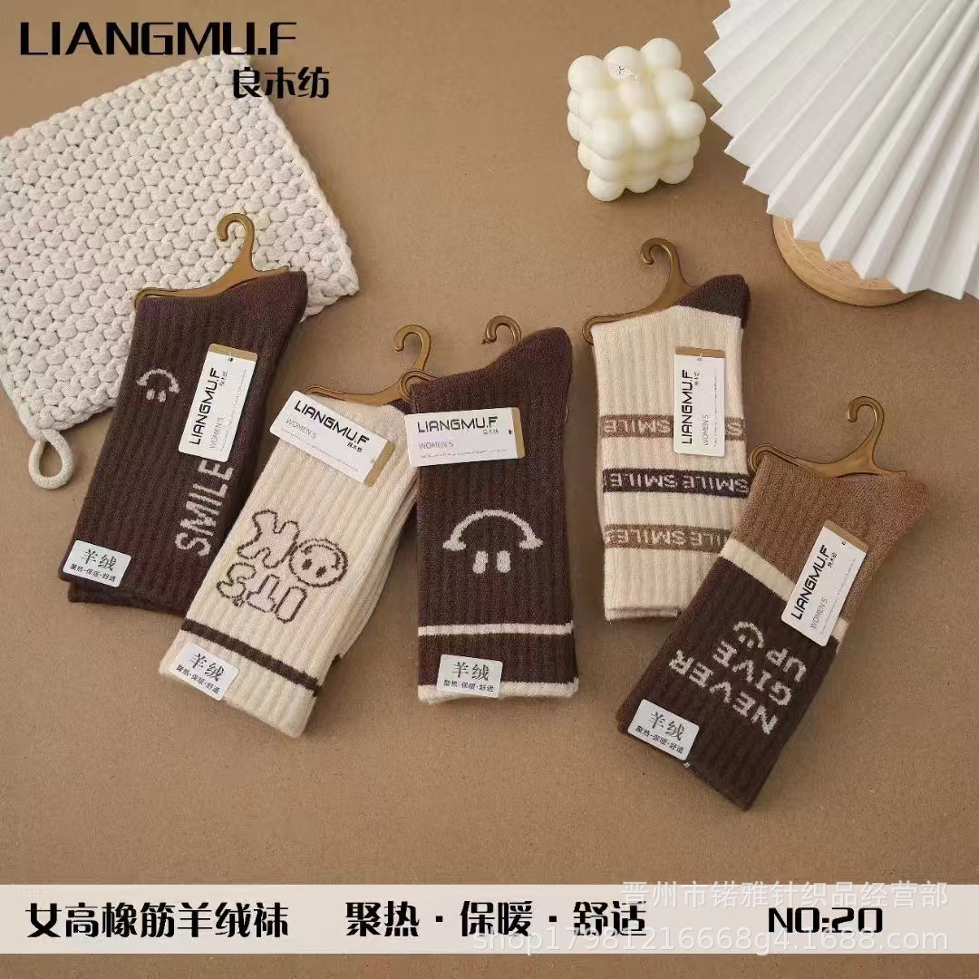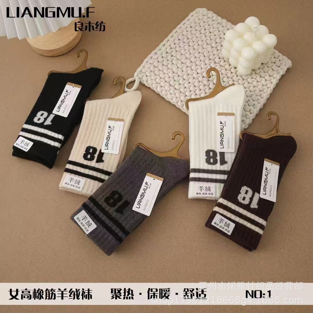 가을과 겨울 Kaisen 고층 캐시미어 여성 유행 양말 유행 긴 배럴 스택 블랙 다크 브라운 학생 양말스토어 가기