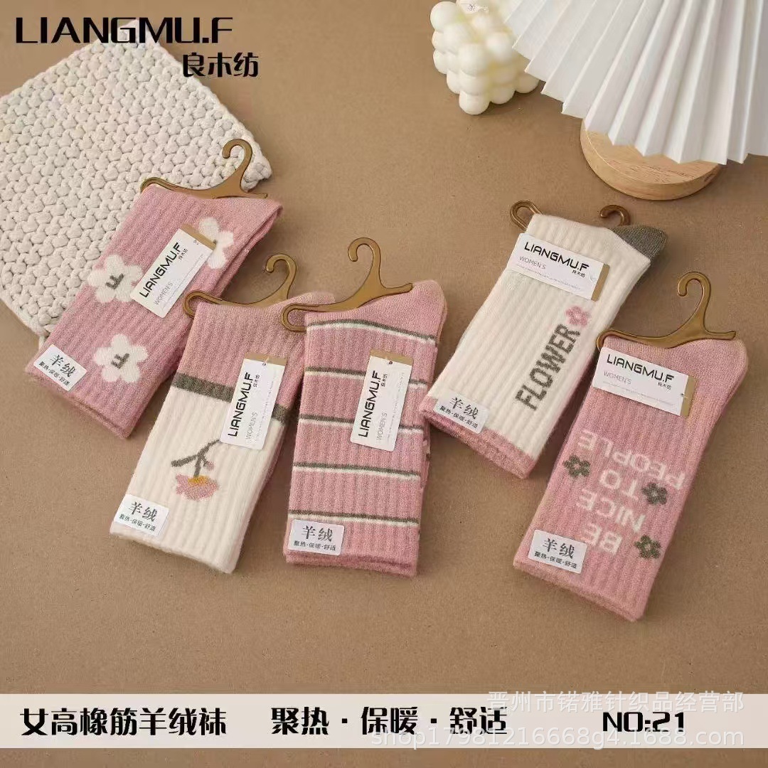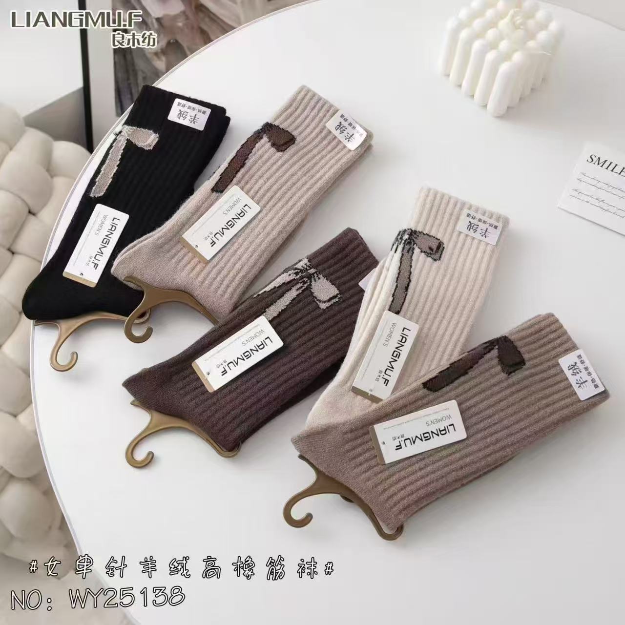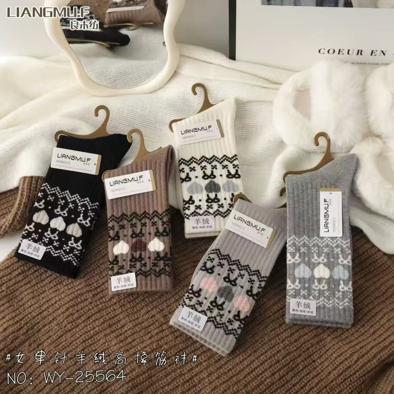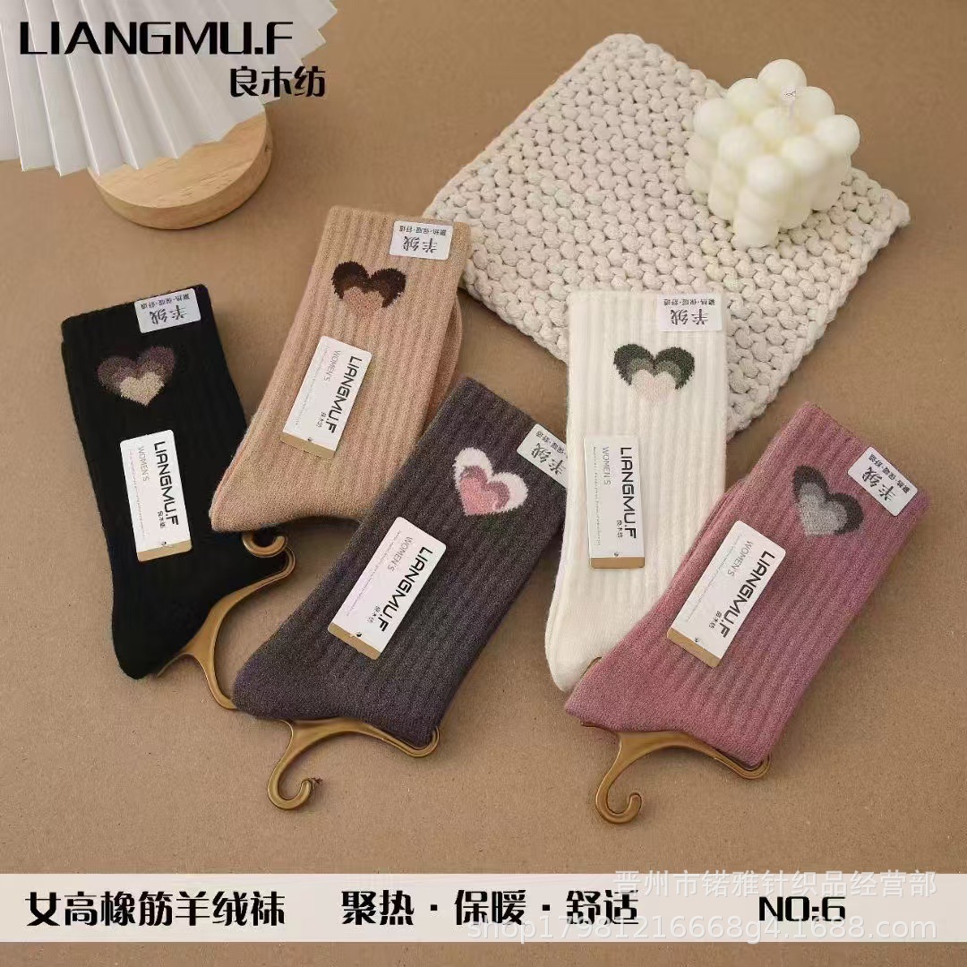 가을과 겨울 Kaisen 고층 캐시미어 여성 유행 양말 유행 긴 배럴 스택 블랙 다크 브라운 학생 양말스토어 가기