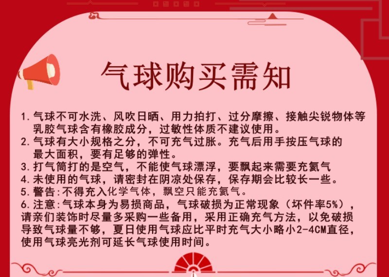 注:乳胶气球有一定破损率(3%以内属于正常现象),拍下即为认同哦!