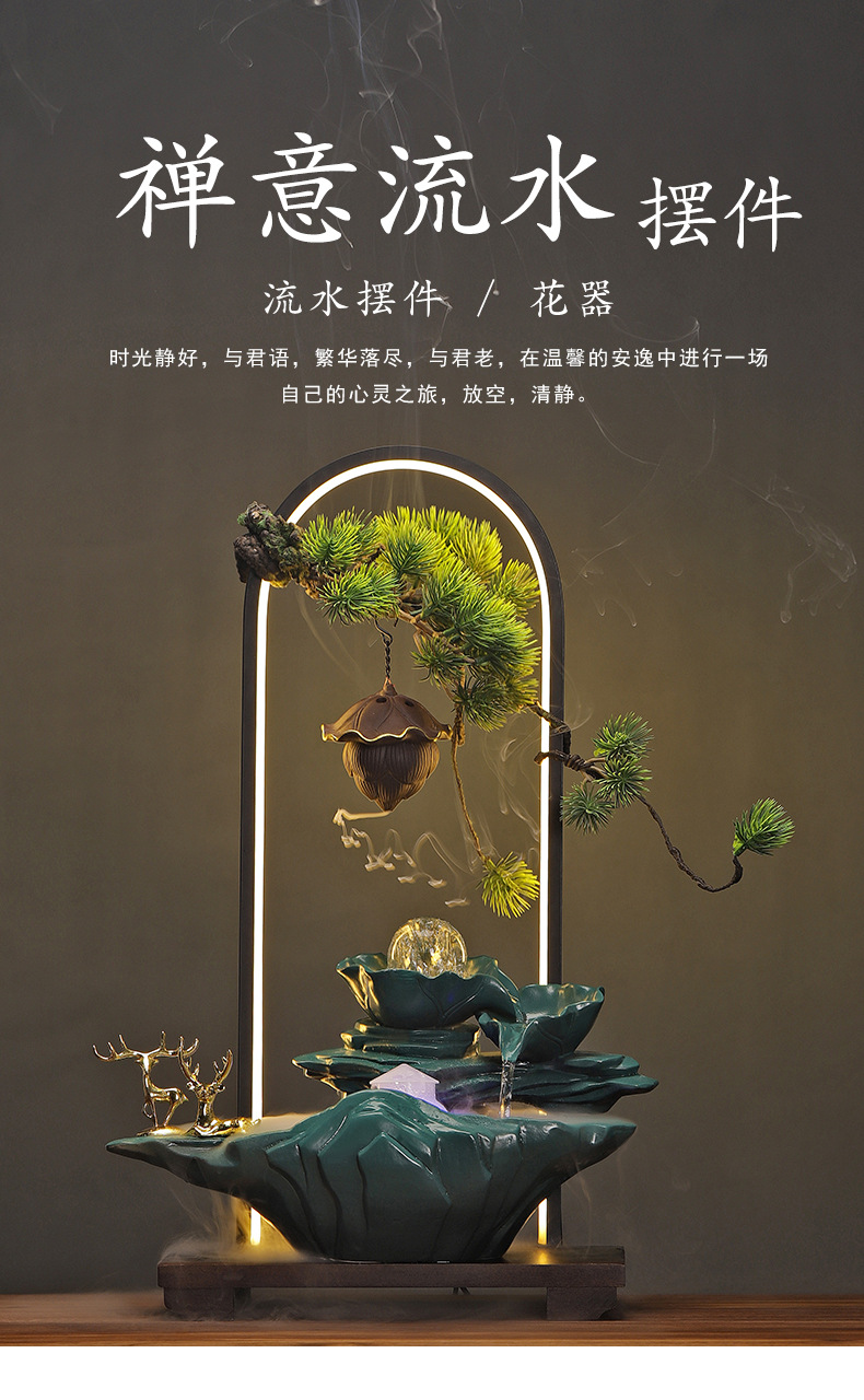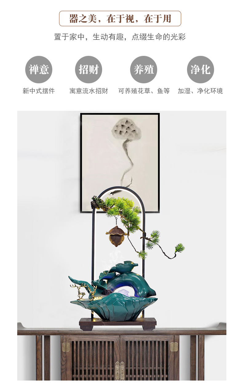 새로운 중국 스타일 부를 만드는 물 장식품 홈 거실 데스크탑 분수 풍경 장식 사무실 오프닝 선물