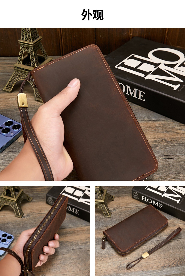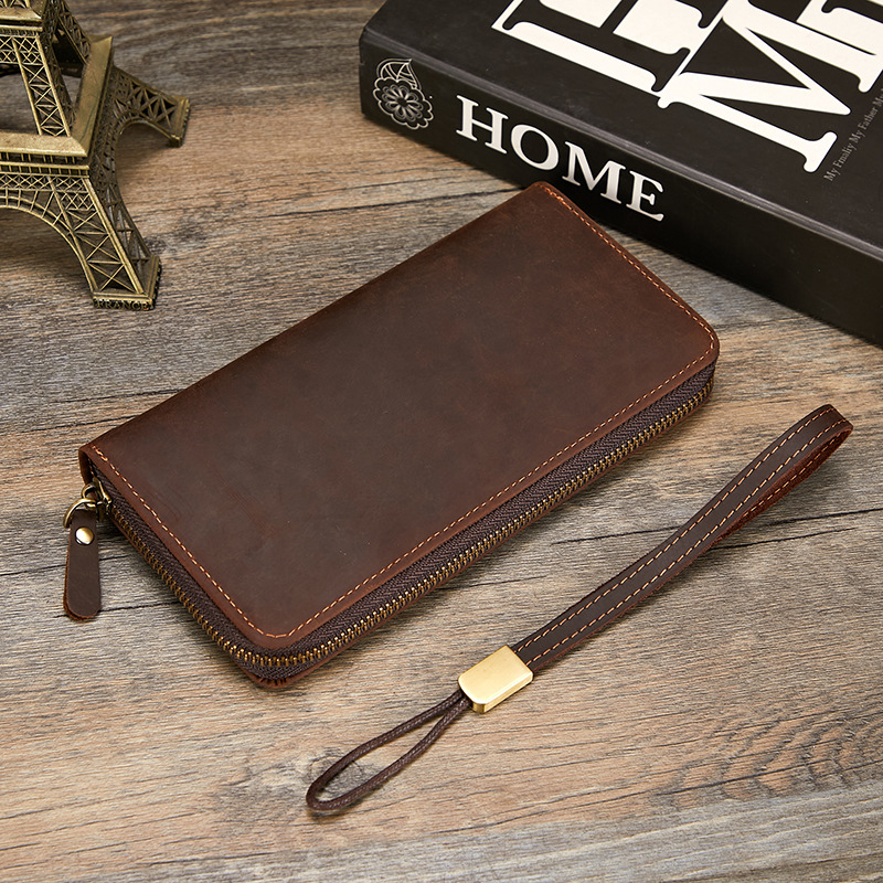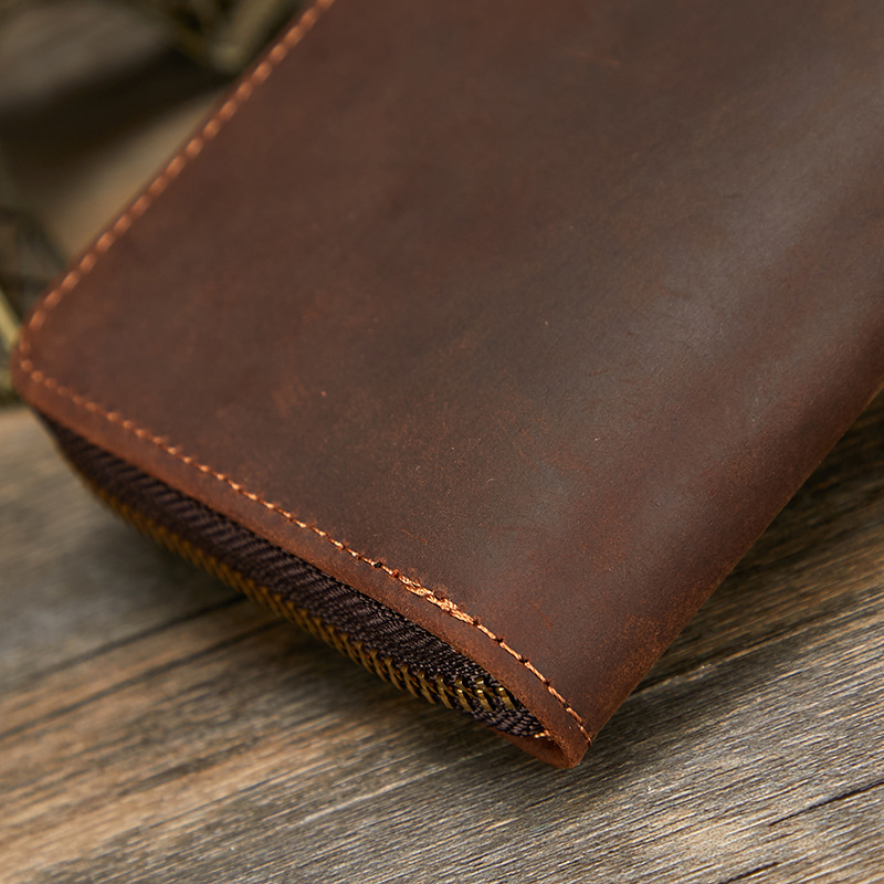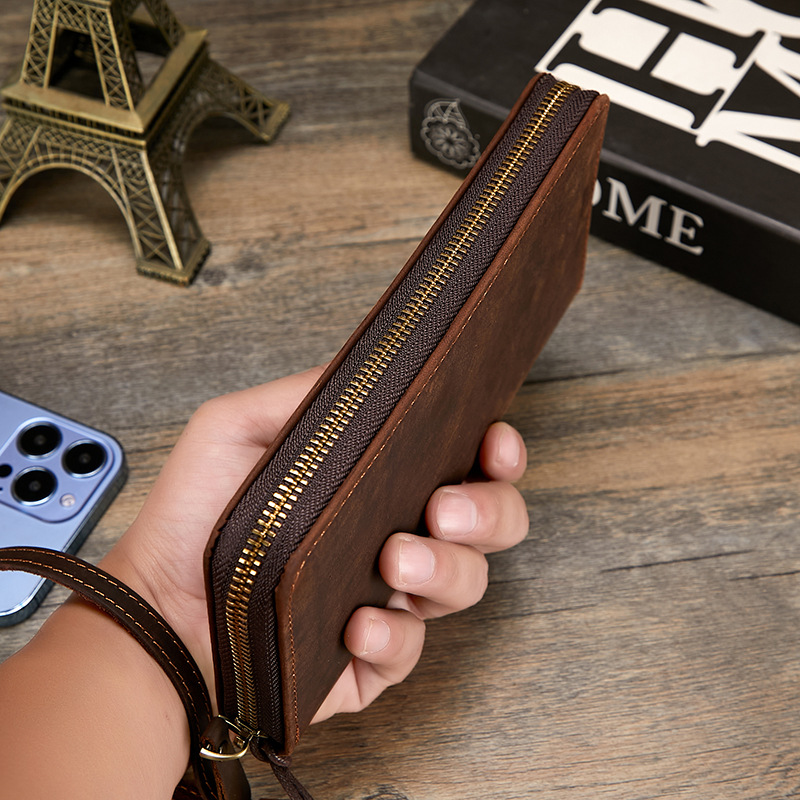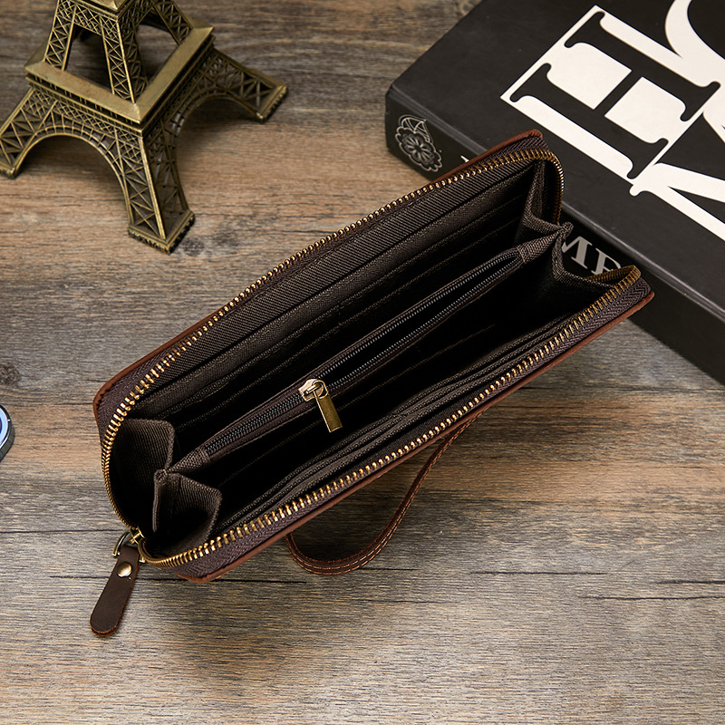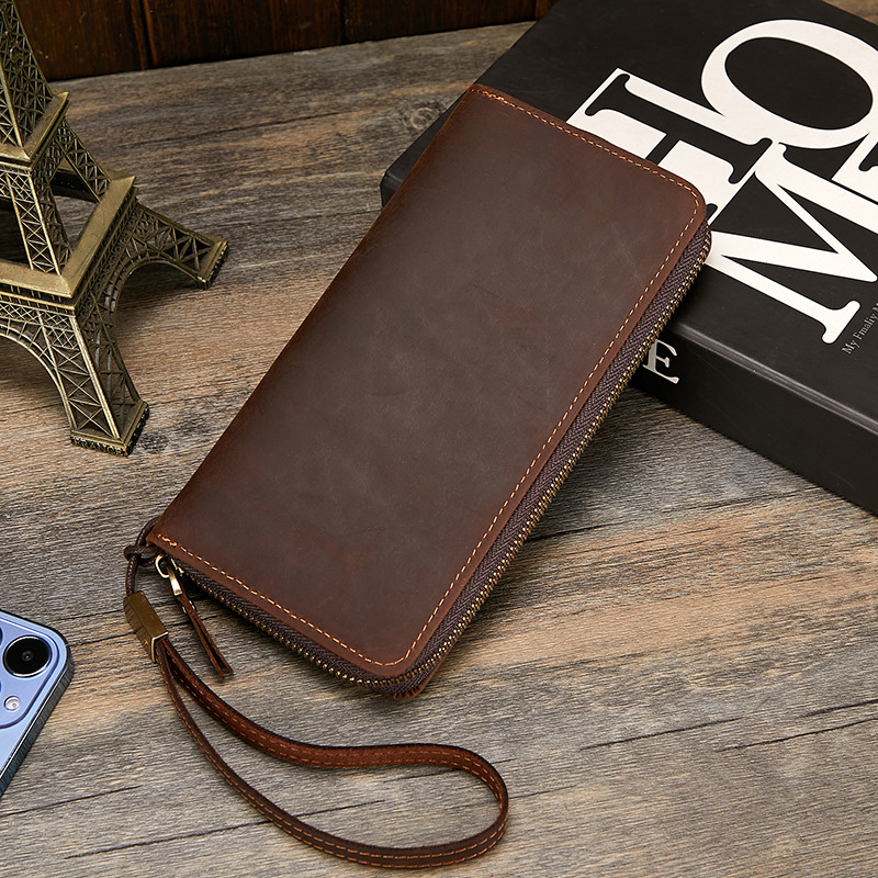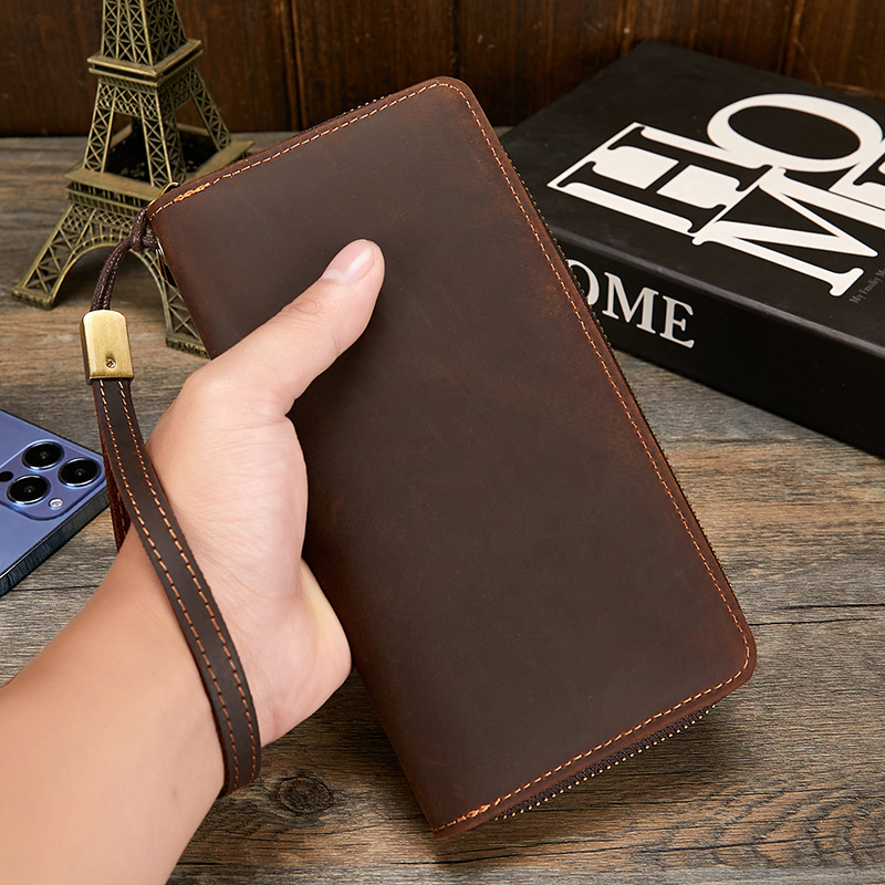 미친 말 가죽 남성용 지갑 정품 가죽 트렌디 레트로 긴 지갑 RFID 자기 방지 남성용 클러치 가죽 지갑스토어 가기