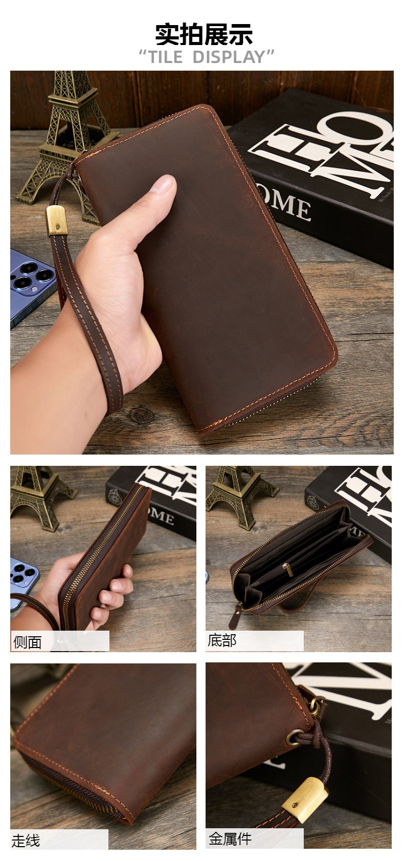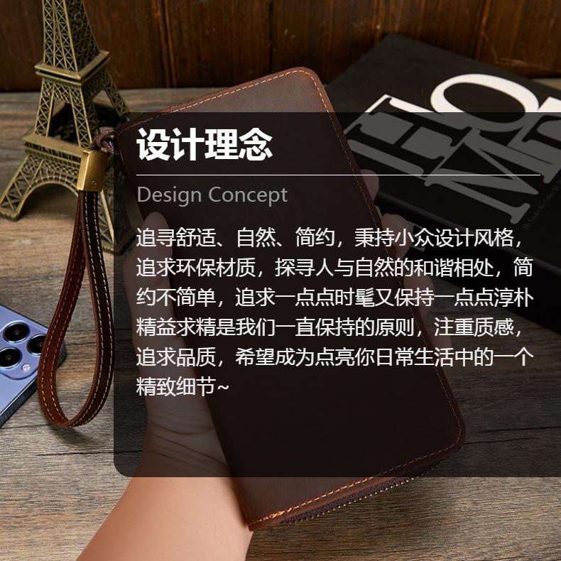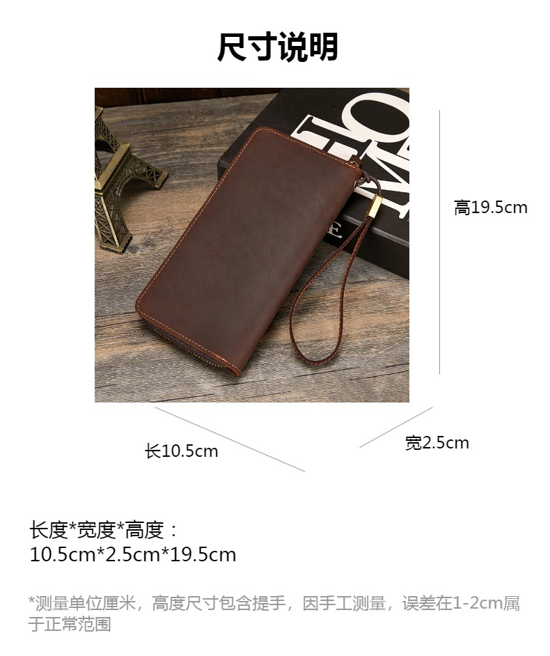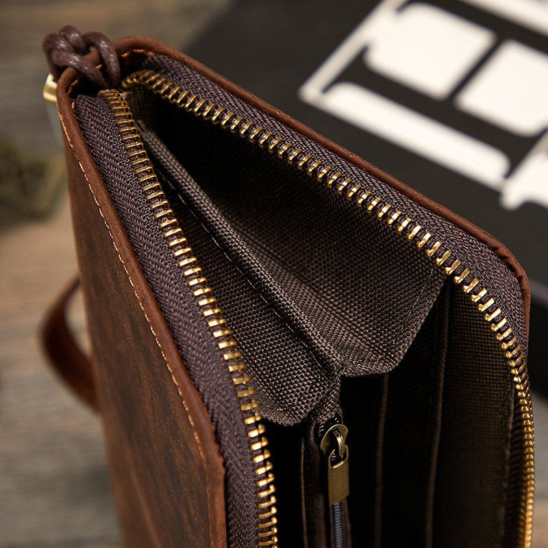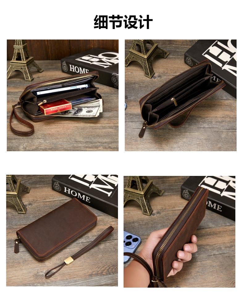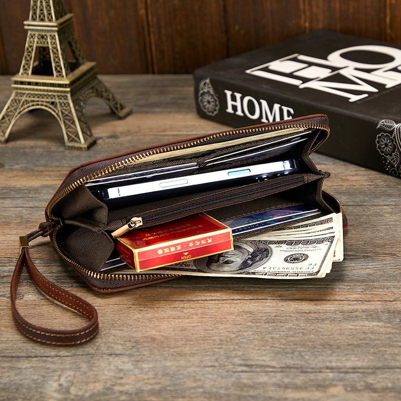 미친 말 가죽 남성용 지갑 정품 가죽 트렌디 레트로 긴 지갑 RFID 자기 방지 남성용 클러치 가죽 지갑스토어 가기