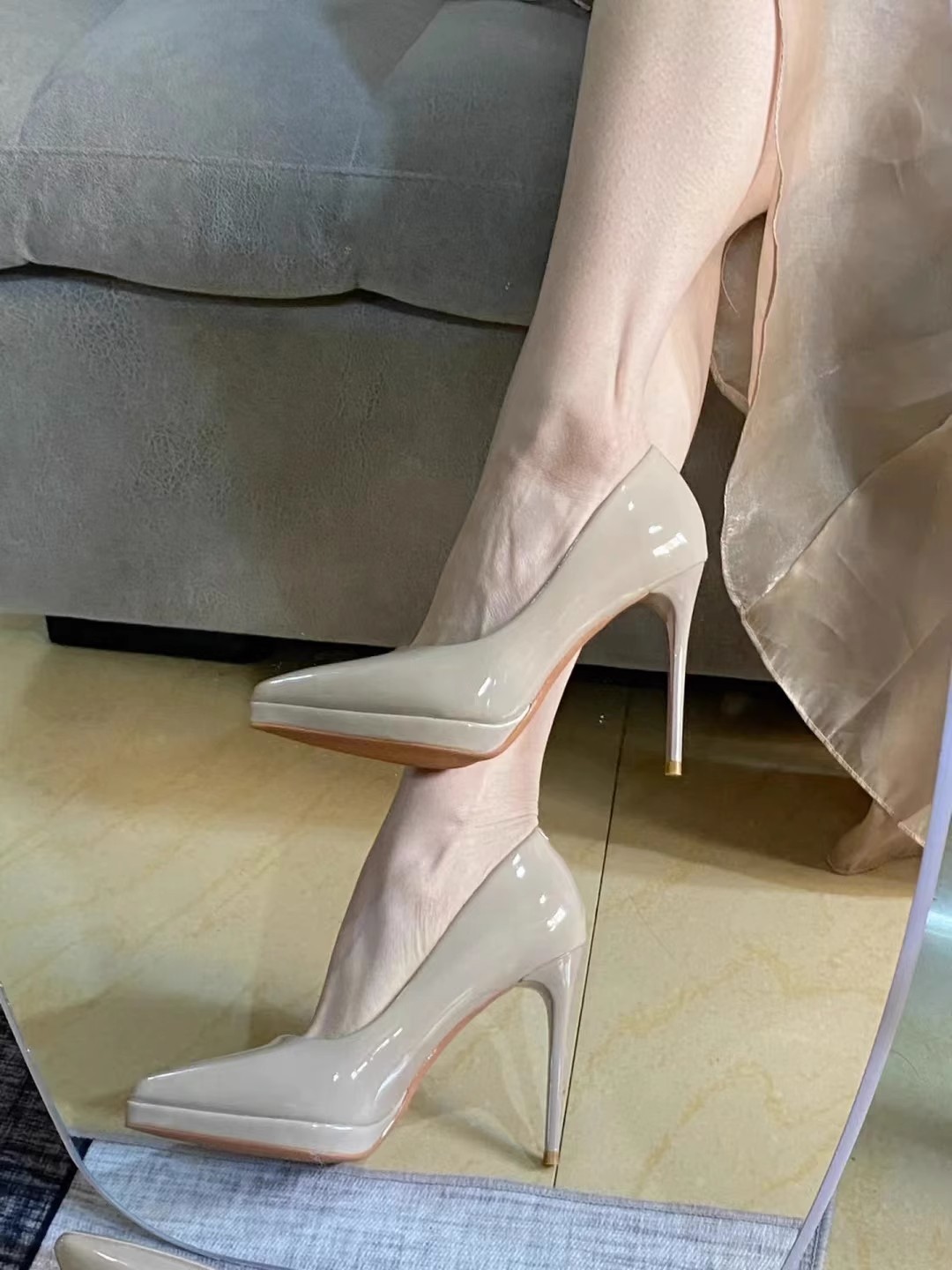 누드 컬러 하이힐 여성용 스틸레토 2024년 뾰족코 얕은 굽 방수 플랫폼 슈즈 페이턴트 가죽 10cm 워터드라인 초하이힐스토어 가기