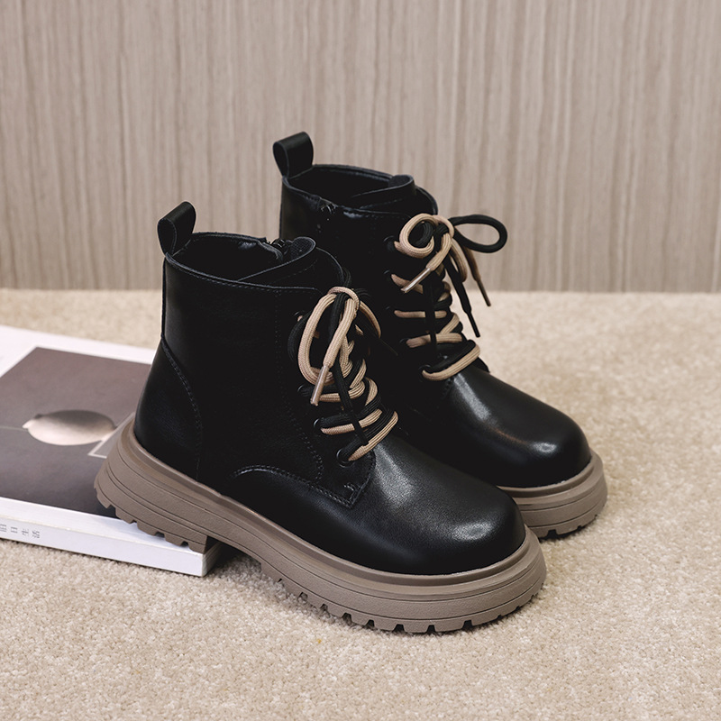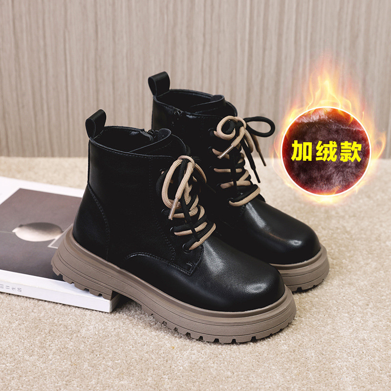 정품 가죽 여아 마틴 부츠 2025 신상 겨울 신발, 인기 폭발, 안감 플리스 아동 숏부츠, 공주풍, 세련된 디자인, 큰아이용스토어 가기