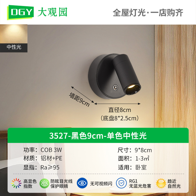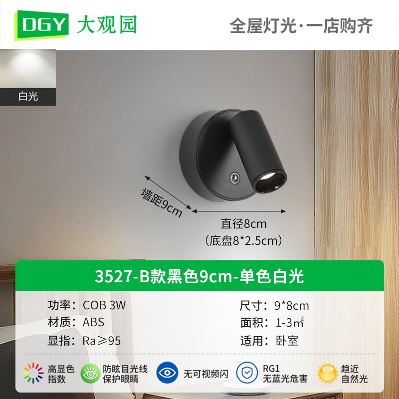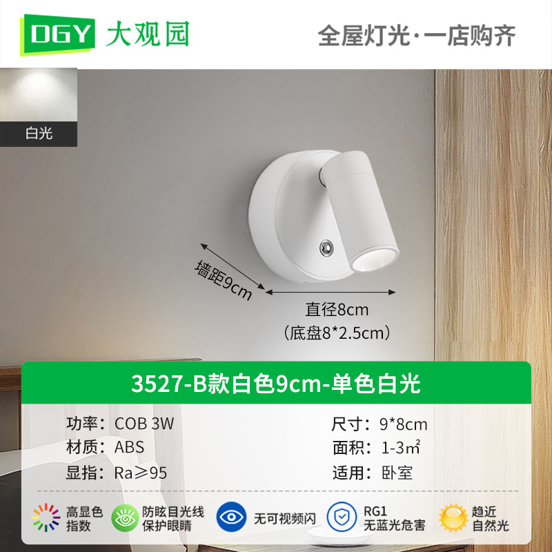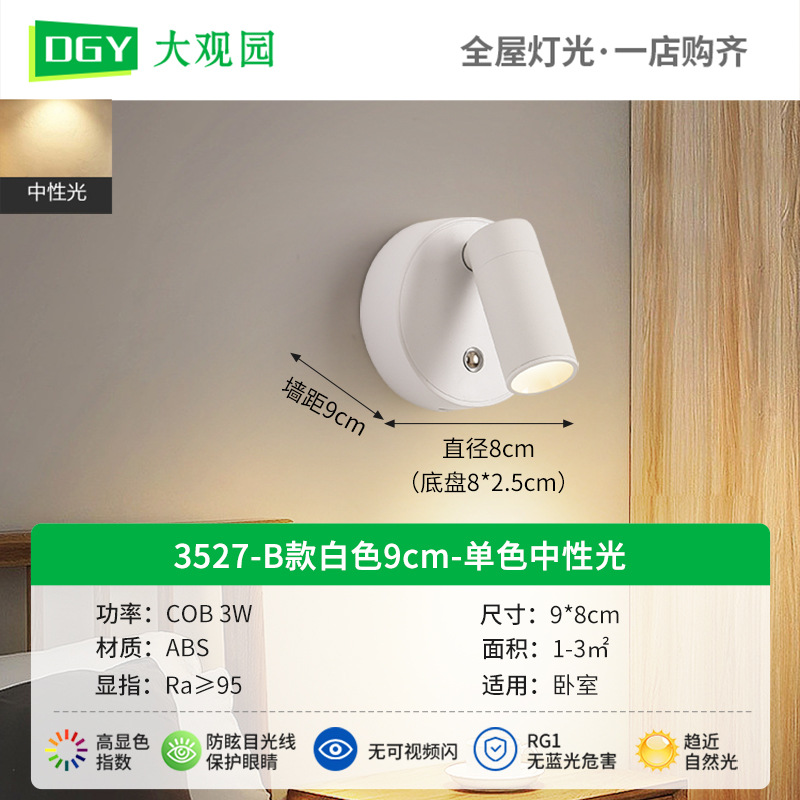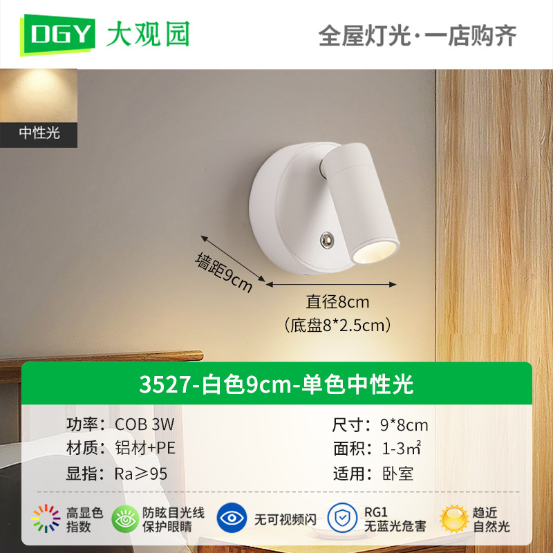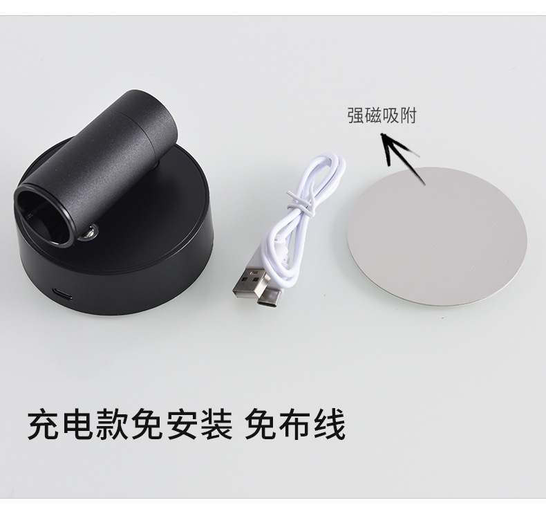 대관원 침대 옆 벽등 독서등 충전식 설치 필요 없음 배선 필요 없음 침실 회전식 자석등 소형 스포트라이트 479L
