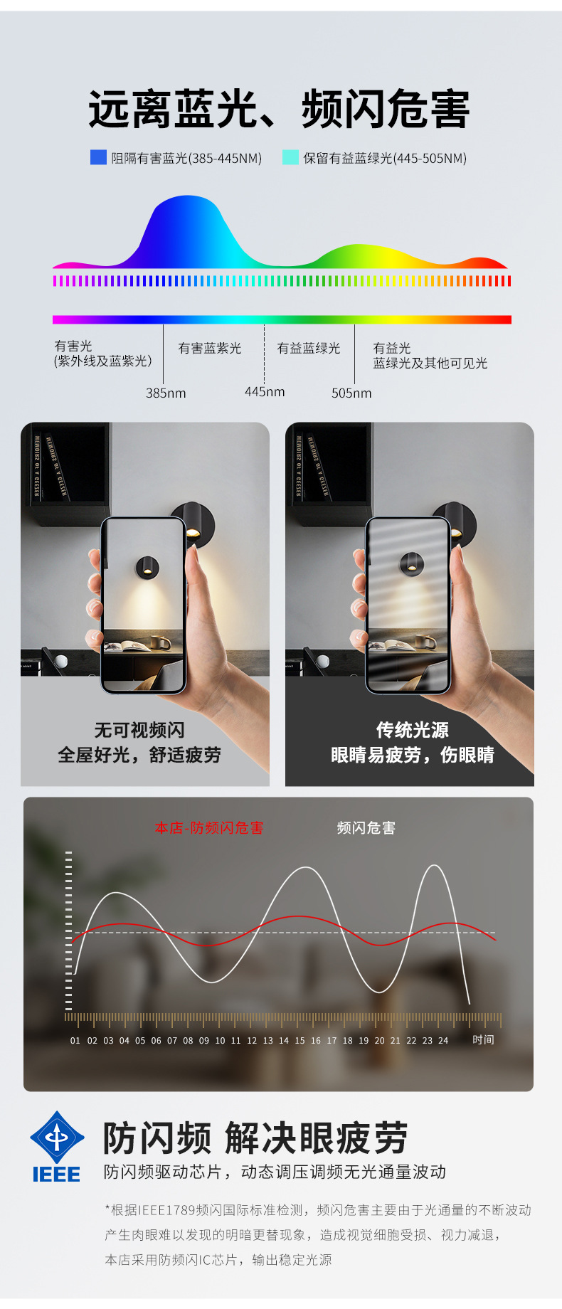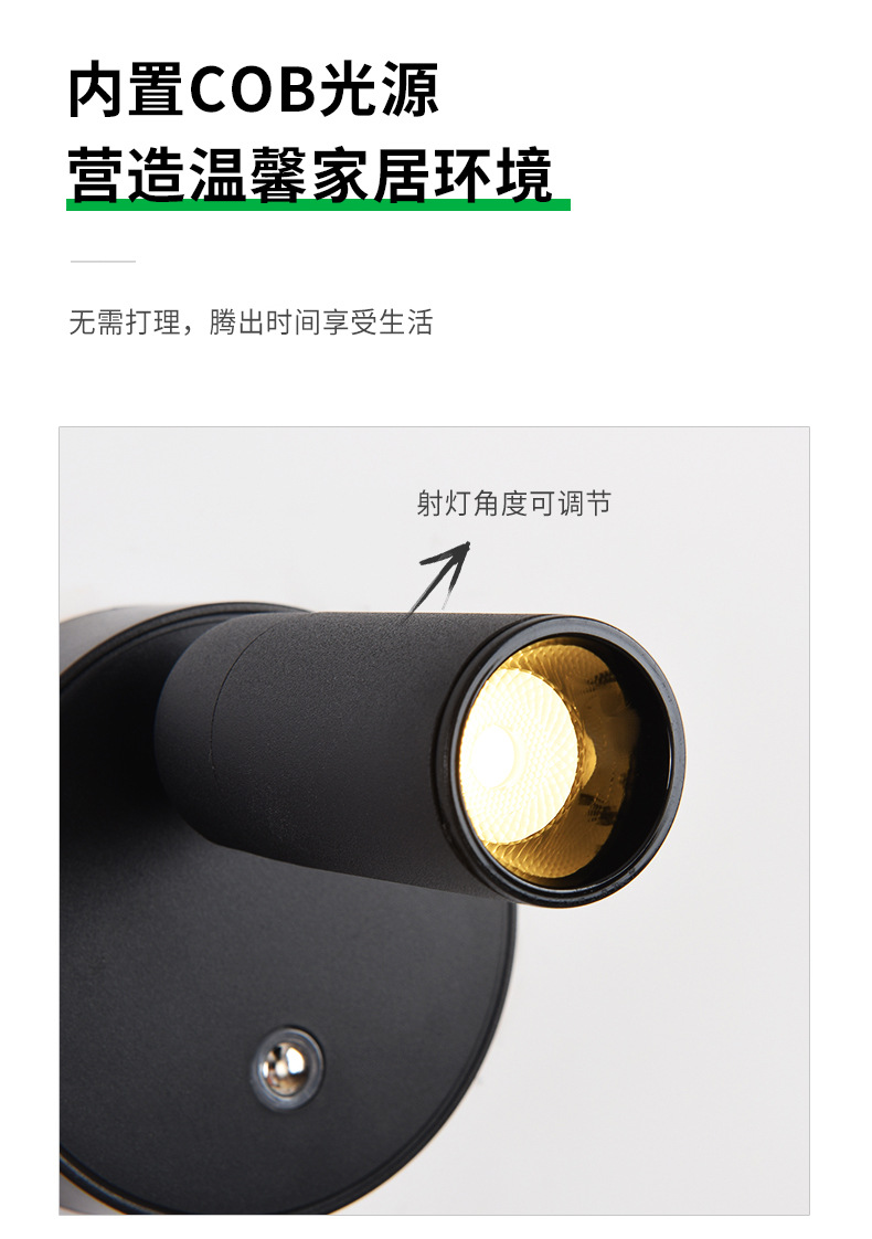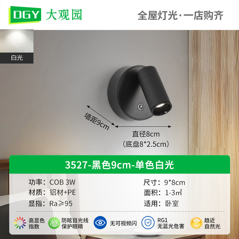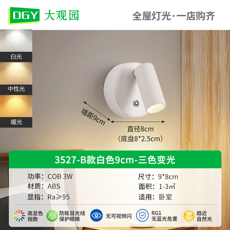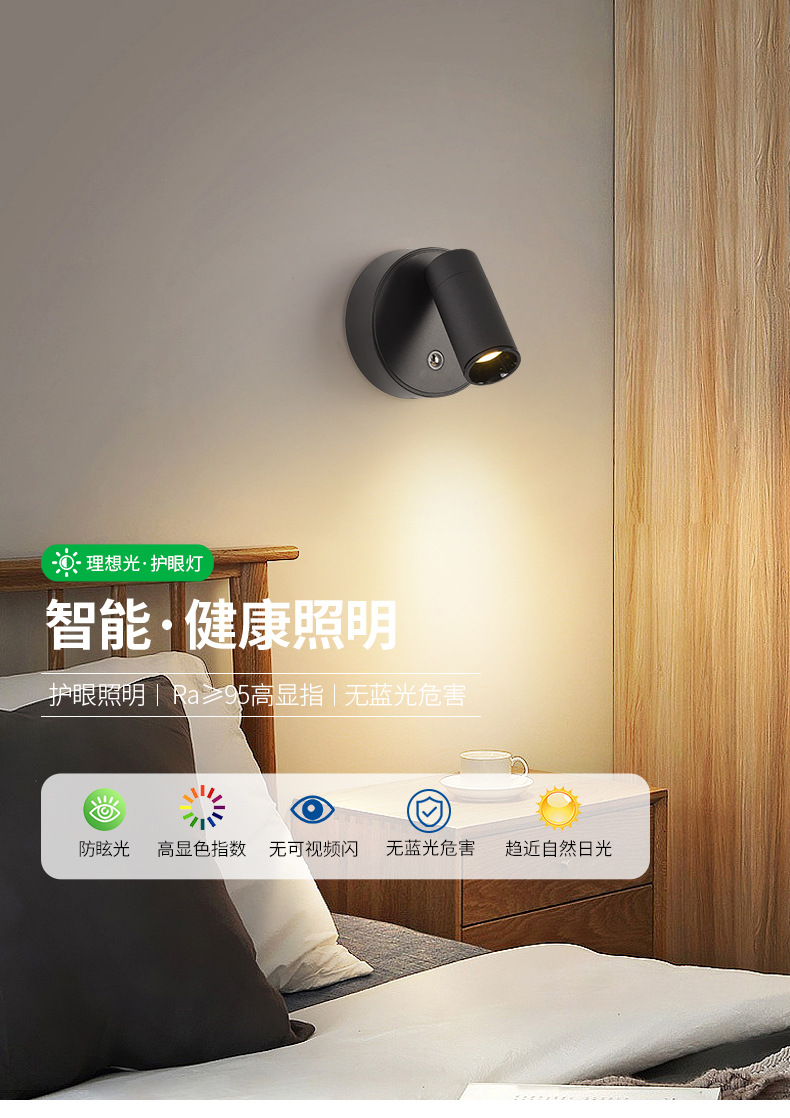 대관원 침대 옆 벽등 독서등 충전식 설치 필요 없음 배선 필요 없음 침실 회전식 자석등 소형 스포트라이트 479L