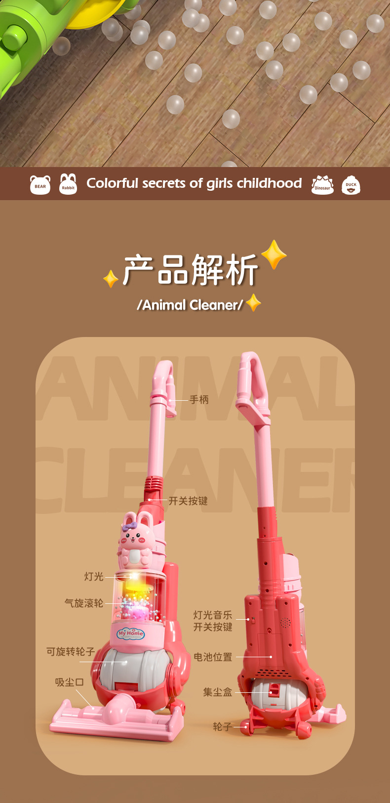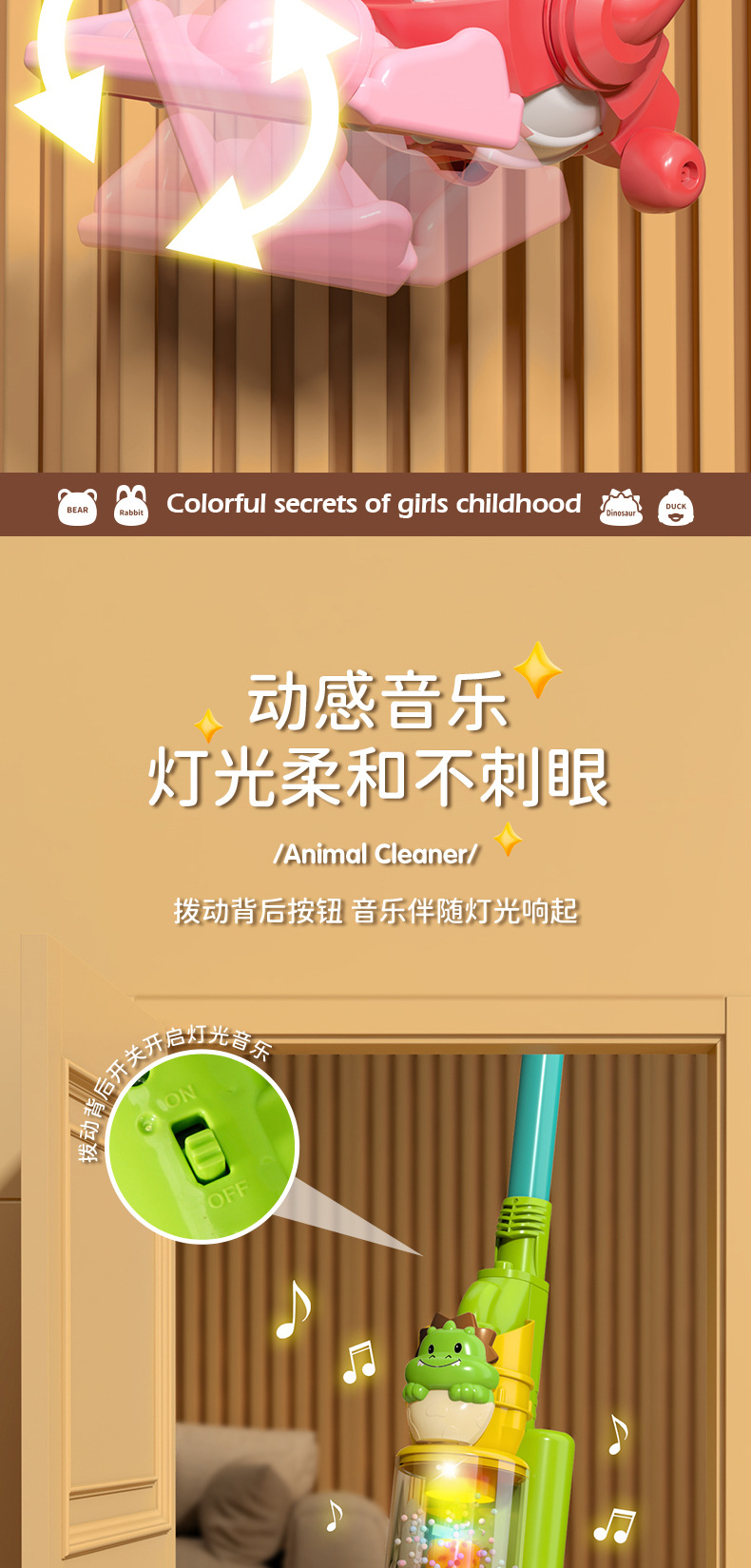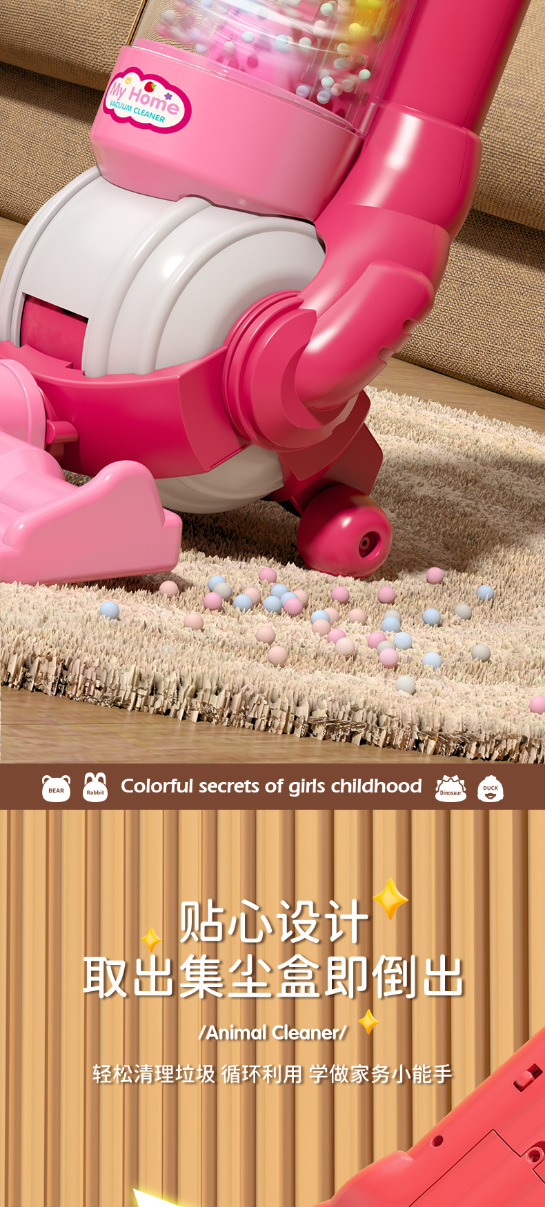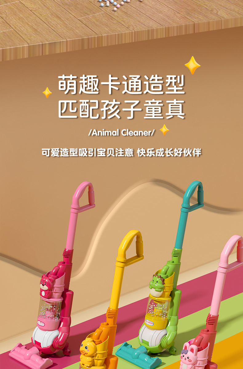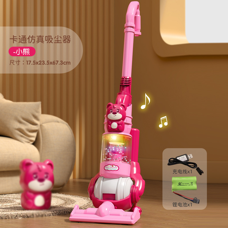국경 간 어린이 시뮬레이션 전기 청소 도구 가벼운 음악 소녀 놀이 집 만화 동물 진공 청소기 장난감스토어 가기