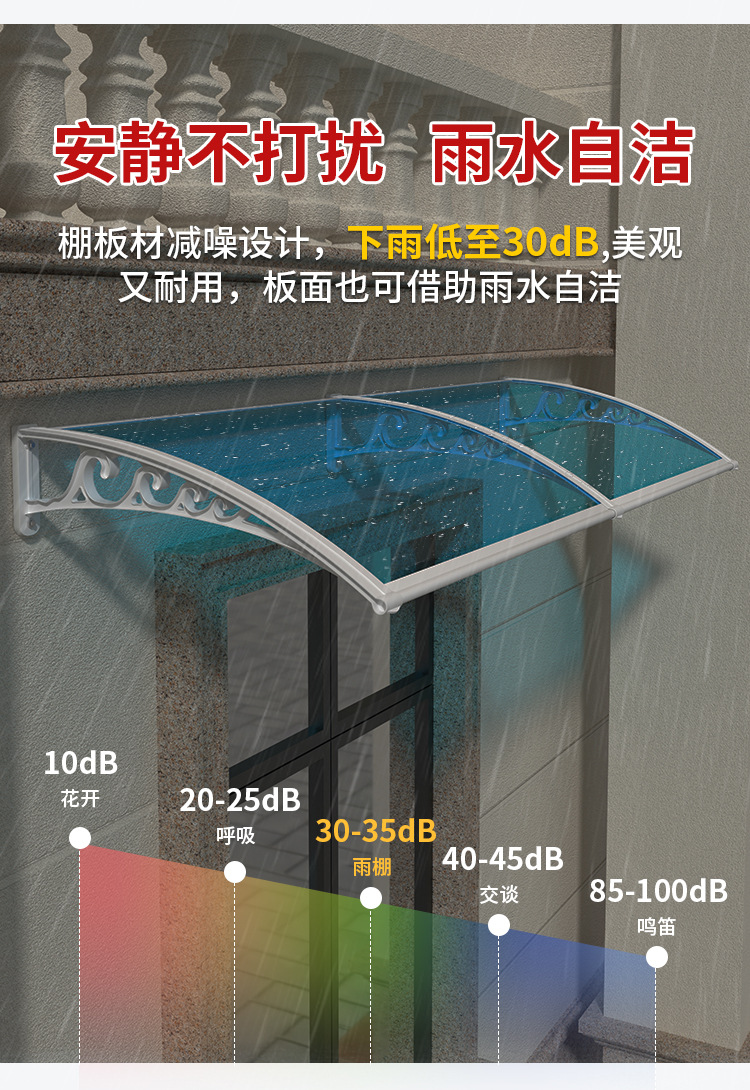 튼튼한 보드 캐노피 가정용 창문 안뜰 도어 헤드 비 방지 베플 처마 발코니 비 방지 야외 차양 비 방지