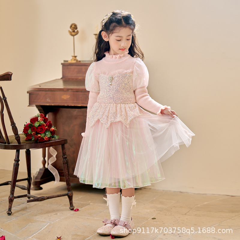 여자 원피스 인어 공주 지 원피스 가을과 겨울 스웨터 원피스 패션 스팽글 원피스 밍크 메쉬 원피스스토어 가기