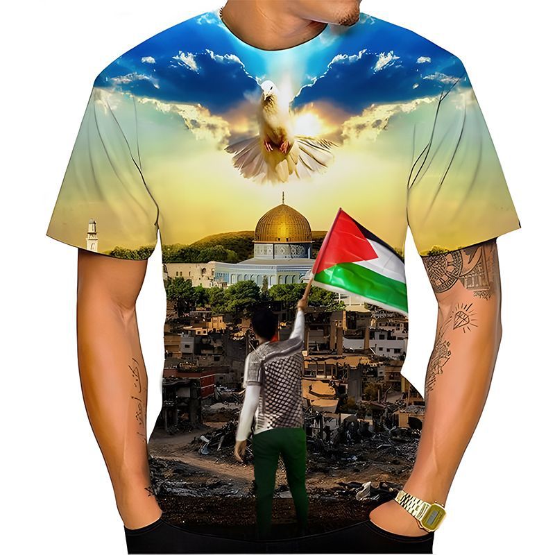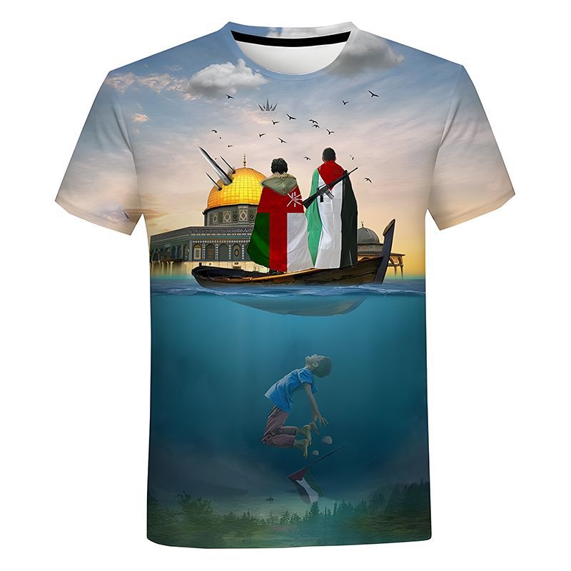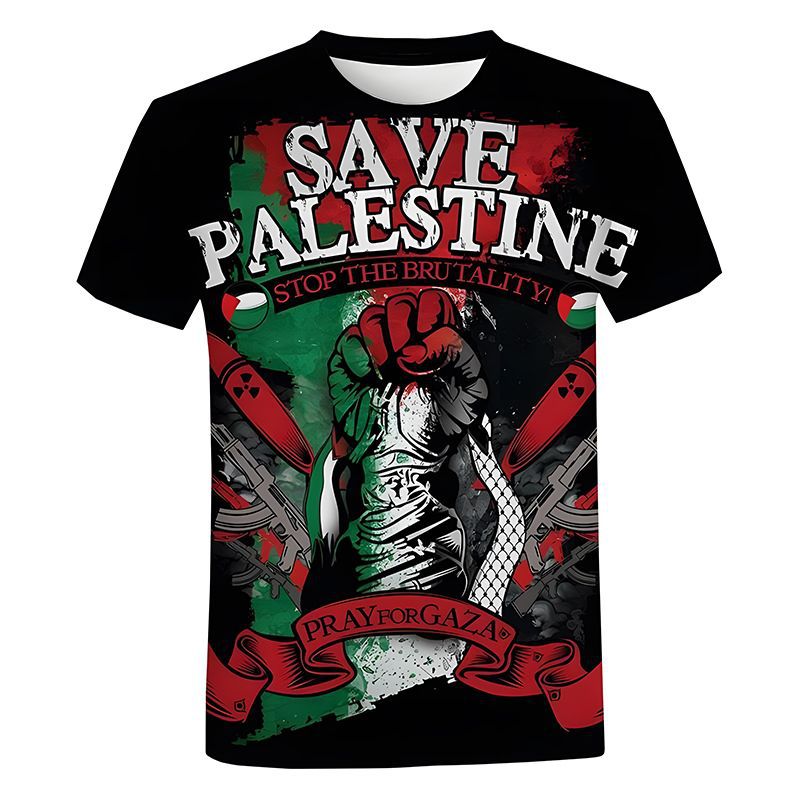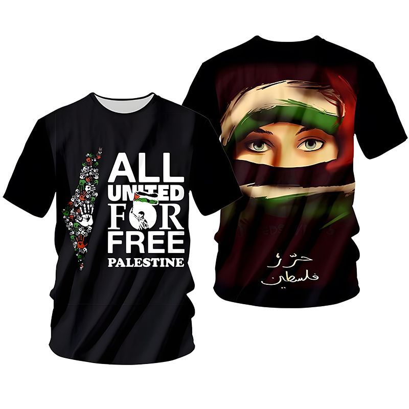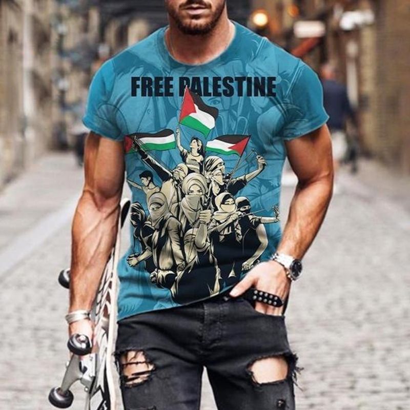 2023 국경 간 신제품 중동 국가 갈등 자유 팔레스타인 깃발 3D 디지털 인쇄 성인 어린이 티셔츠스토어 가기