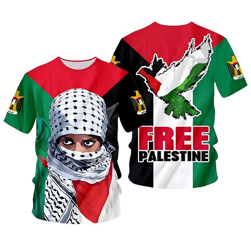 2023 국경 간 신제품 중동 국가 갈등 자유 팔레스타인 깃발 3D 디지털 인쇄 성인 어린이 티셔츠