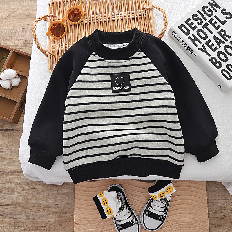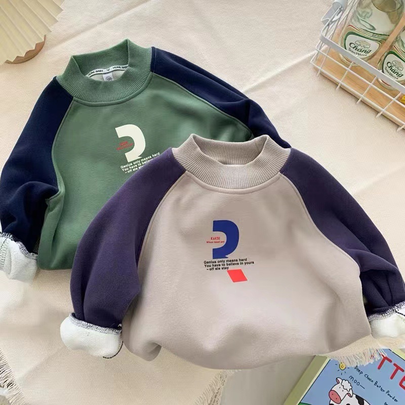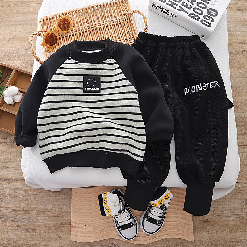 男童加绒卫衣秋冬装2023新款宝宝潮牌衣服儿童网红痞帅气加厚套装