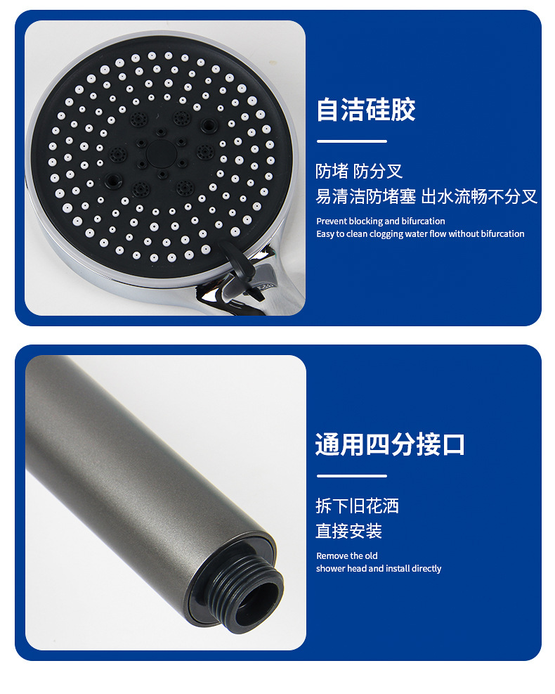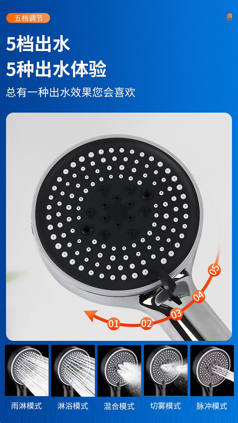 • 전기도금 실버 업그레이드 다섯 번째 샤워 + 1.5 m 암호화 샤워 튜브