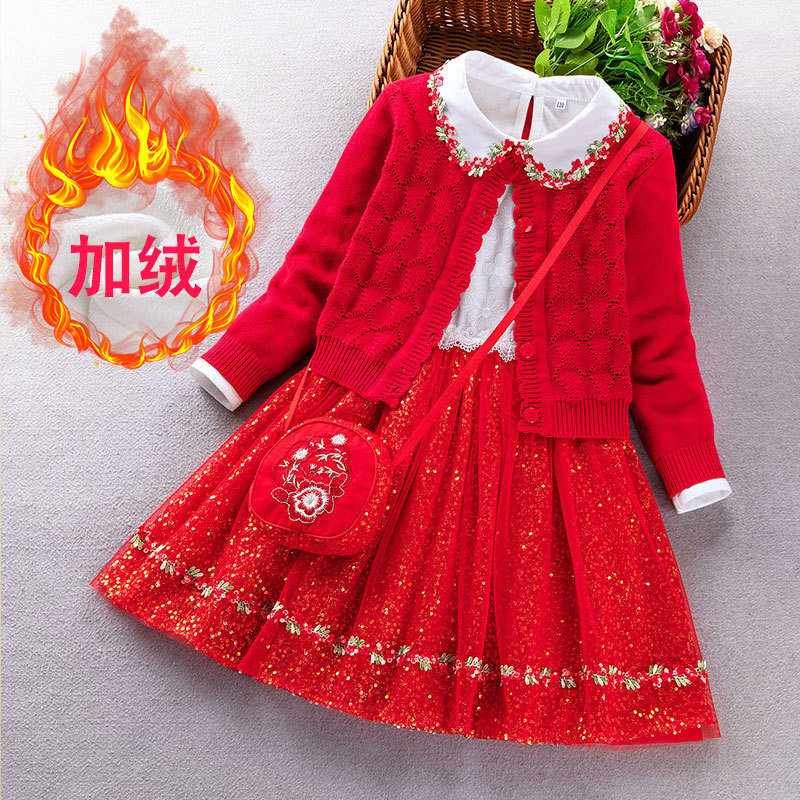 여아 니트 스웨터 원피스 기모 두꺼운 어린이의 새로운 긴 소매 스커트 여아 패션 세련된 공주 치마